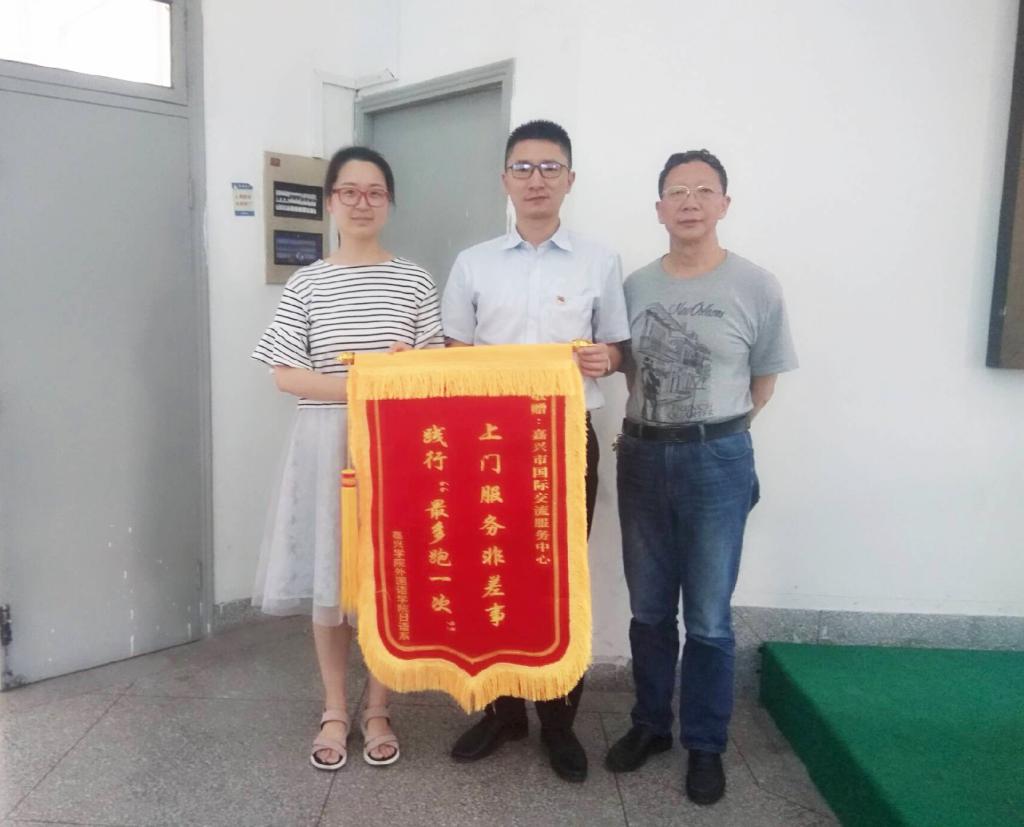 为此,具体组织和实施夏令营活动的同人漫画 日语系和社会培训中心向嘉兴市国际交流中心高主任赠送了一面锦旗——“上门服务非差事,践行‘最多跑一次’”,以此表达我们对嘉兴市国际交流中心服务发自内心的赞誉。
