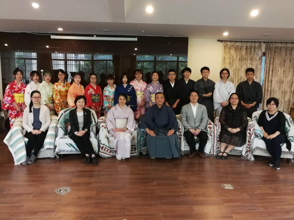 2018426日,日语专业客座教员、原嘉兴日系企业协会会长、嘉兴杰富意精密钢管有限公司总经理青柳昌司先生携助手前来我校,为日语专业学生举办了一场身着优雅和服,感受“一期一会”茶道思想的日本文化体验课。
