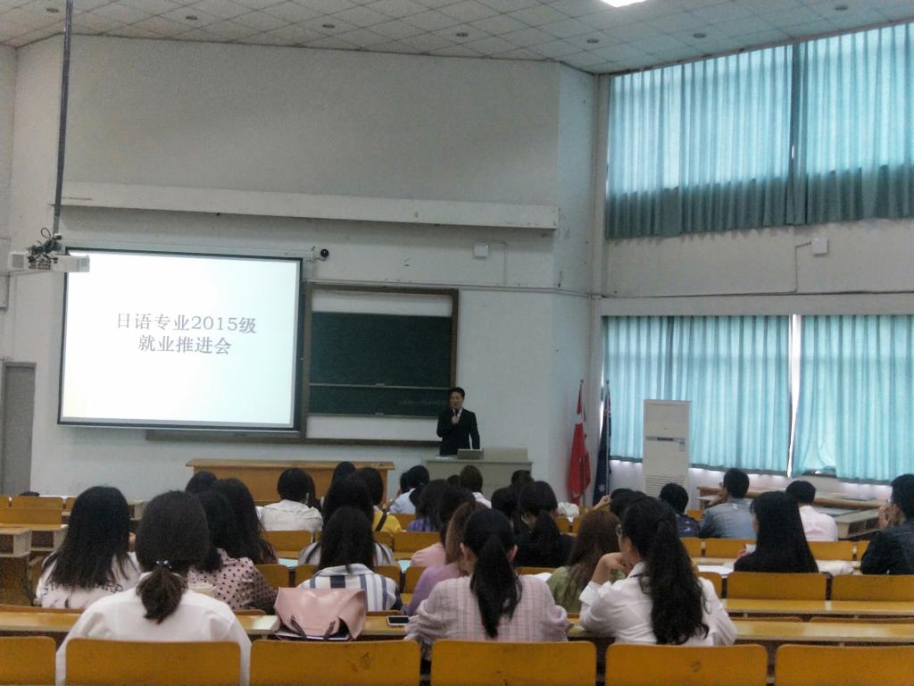 在“就业推进会”上,日语专业负责人郭永恩老师说,老师们都注意到了三个月毕业实习后同学们的变化,三个月后的同学们多了一份沉稳,更加成熟了。社会锻炼人,他鼓励同学们积极就业,接受社会的洗礼。他尤希望同学们留在度过生活了四年的嘉兴,为嘉兴的经济社会发展贡献力量。