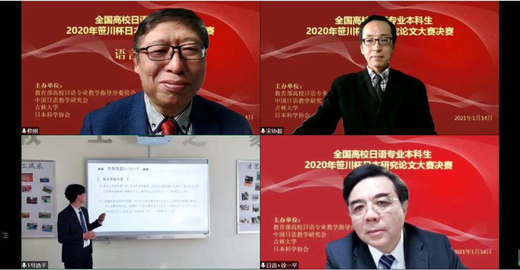 2021年1月14日,由教育部高等学校外国语言文学类专业教学指导委员会日语分委员会、中国日语教学研究会以及日本科学协会等主办的“2020年‘笹川杯’日本研究论文大赛”以在线且匿名方式举行。本次大赛,共收到80所高校共371篇大学生的学术论文。在日语专业教师王雪博士的悉心指导下,2017级日语专业学生汪佩佩的论文『近代日本の時文教科書についての一考察』挺近决赛并最终斩获了语言组三等奖,与北京大学、湖南大学和天津外国语大学等高校日语专业的同学们一同出现在了领奖屏幕上。