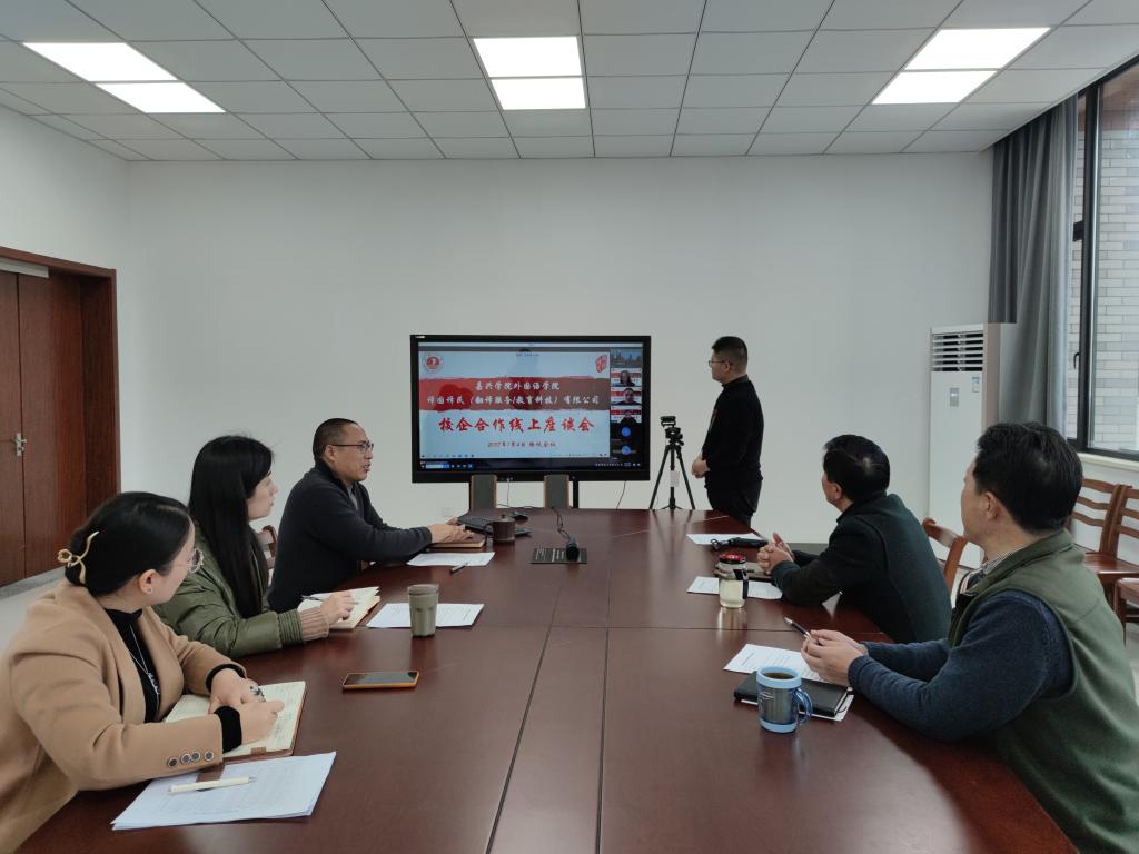 1月4日,同人漫画 与译国译民(翻译服务/教育科技)有限公司举行校企合作线上见面会,双方就开展校企合作进行洽谈。会议由副院长喻锋平主持,学院领导班子成员参加见面会。