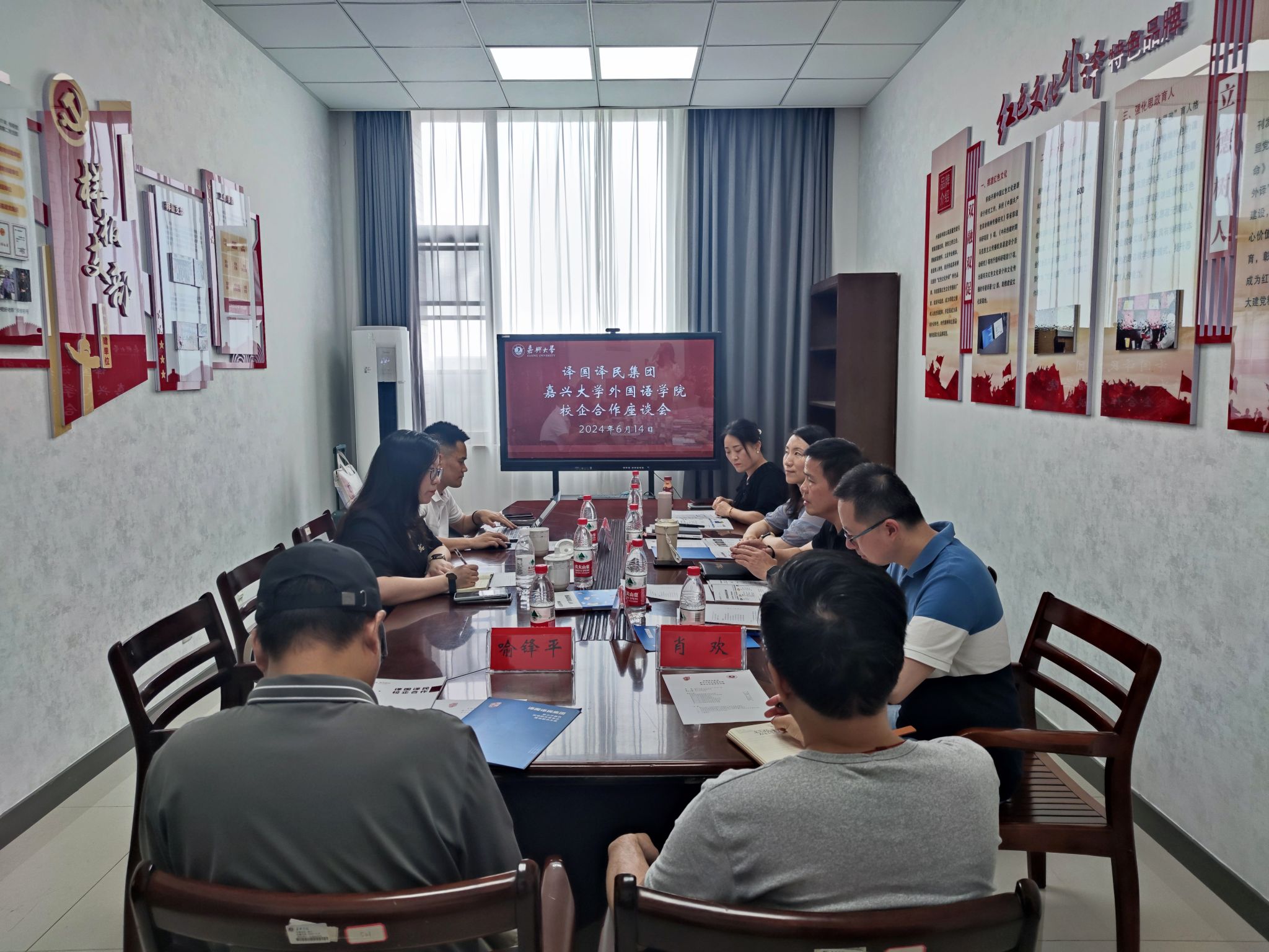 6月14日下午,同人漫画 与译国译民集团在兴德楼南楼521举行座谈会,双方就进一步深化校企合作事宜进行洽谈。会议由院长唐艳芳主持,学院副院长邱佳,英语系教授喻锋平、肖欢,英语系副主任潘宁宇,日语系副主任张艳琴参加座谈。
