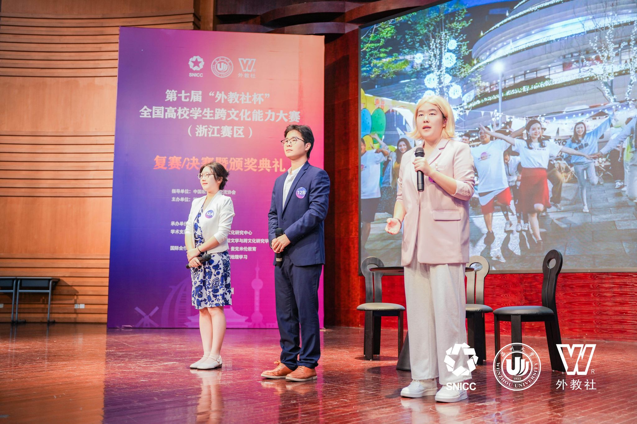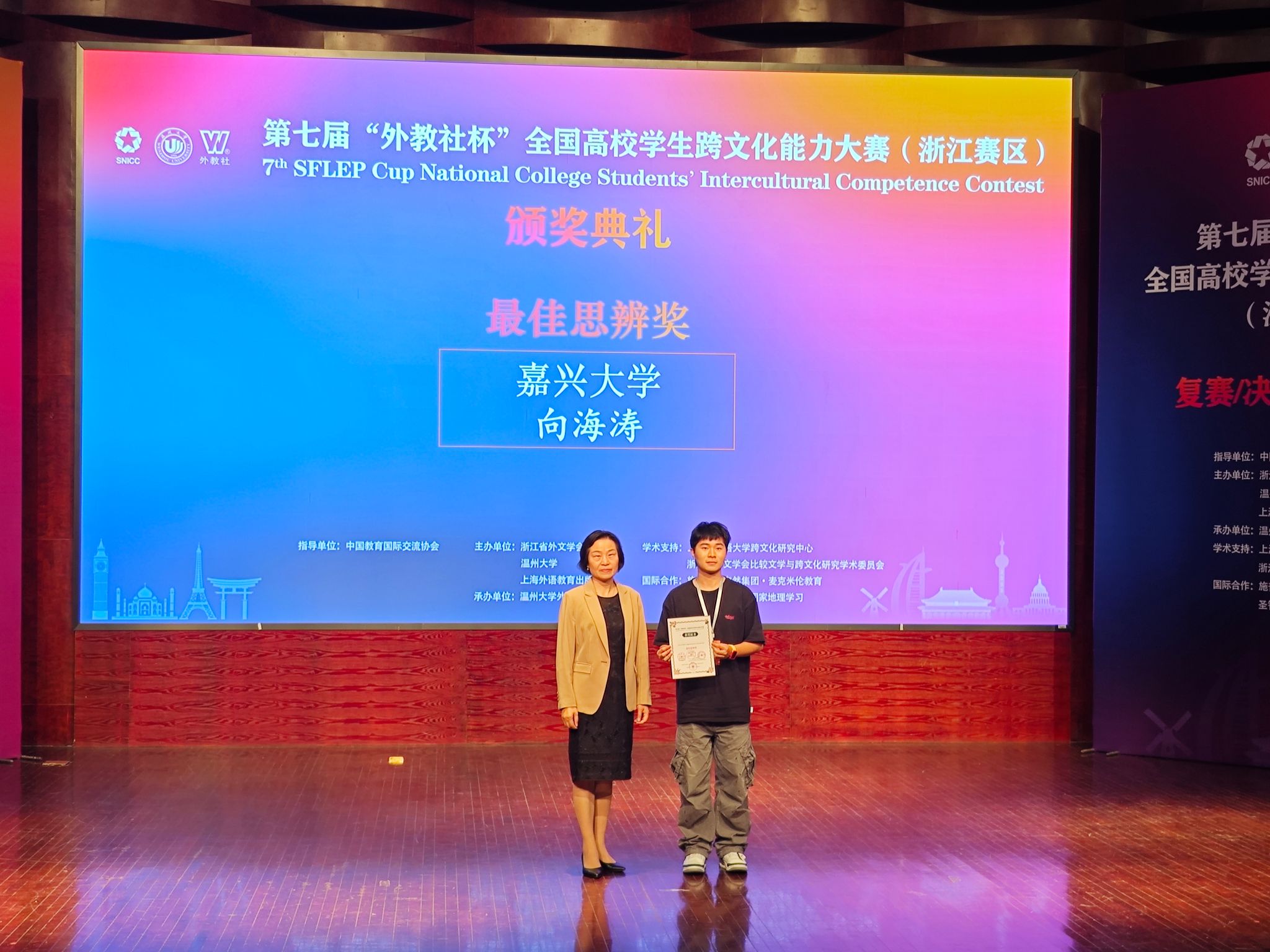 11月16日至17日,第七届“外教社杯”全国高校学生跨文化能力大赛浙江赛区(英文组赛道)在温州大学成功举办,吸引了来自浙江省30所高校的代表队参加。由同人漫画 陶丹玉、罗国华和鲁俊丰老师指导的学生向海涛、项夕雅和周子璇三位选手代表同人漫画 参赛获得省级一等奖,其中向海涛同学获得“最佳思辨奖”。这是我校学生在该项赛事获奖上取得的新突破。