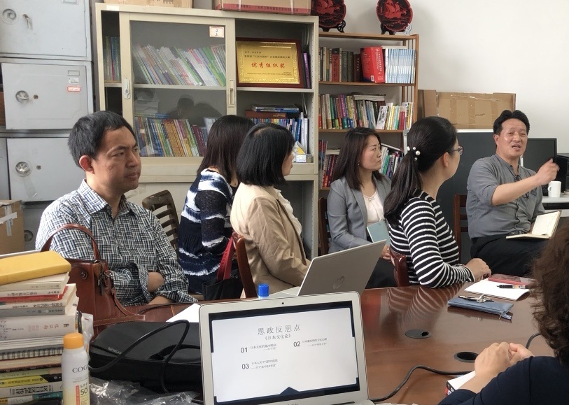 课程思政授课展示分享后,各系部邀请了学院领导和专家进行了现场点评。学院副院长喻锋平认为,集体备课就是不同教师针对相同的教学内容,对形式多样的课堂教学设计进行讨论,相互借鉴、取长补短,共同打磨出一份凝聚集体智慧的优秀教案。今天的集体备课会只是我们改进、完善和提升教学质量的开端,接下来学院还将通过课堂观摩、经验分享和教学研讨等形式,丰富和完善课程思政教学案例,构建内容丰富、形式多样、特色鲜明的外语课程思政教学资源库。副院长郭永恩指出,教师以引导学生对日本文化进行深入思考的方式,在教学过程中帮助学生树立对祖国的文化自信和民族自信,有助于课程思政育人效果的落实。点评专家之一的陶丹玉老师介绍了丹麦奥尔堡大学开展的PBL教学模式。该教学法在于发挥问题对学习过程的指导作用,Problem和Project是该教学模式的核心。这种新的教学模式对于创新外语课程教学具有启发意义。