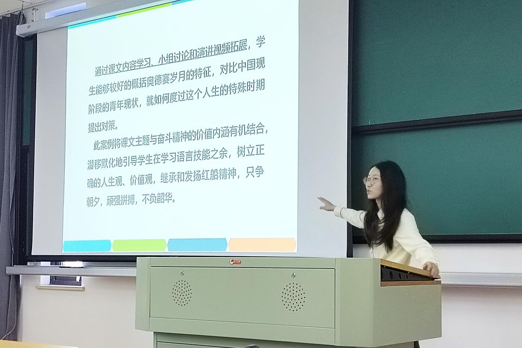 与会教师还针对今天的课程思政集体备课会进行了讨论、分析和交流,分享了学习体会。大家一致认为:今天的课程思政授课展示凸显了思政元素在教学中的重要性,其潜移默化的思政导入,丰富多彩的语言训练活动,不仅有助于培养学生的语言应用能力,更重要的是能有效地以语言学习为载体来帮助学生树立正确的世界观、人生观和价值观。他们纷纷表示,这样的集体备课形式既有教学案例的分享,也有教学理念的交流,还有教学方法的指导,让他们受益匪浅。