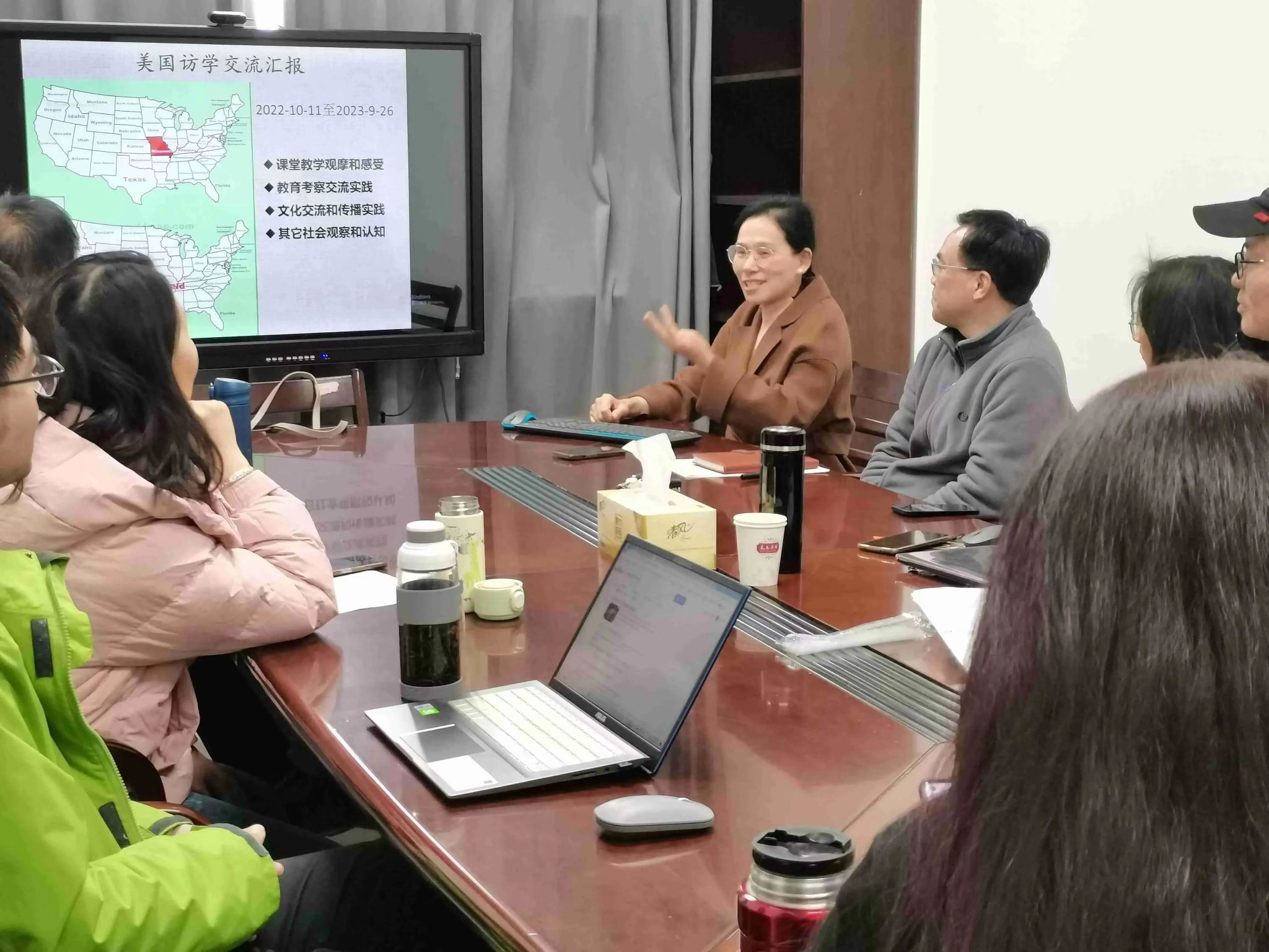 11月30日下午,英语系在兴德南楼521室召开了海外访学教师经历分享会。陶丹玉教授和潘宁宇博士分别为出席的英语系教师作了内容精彩的主题发言。