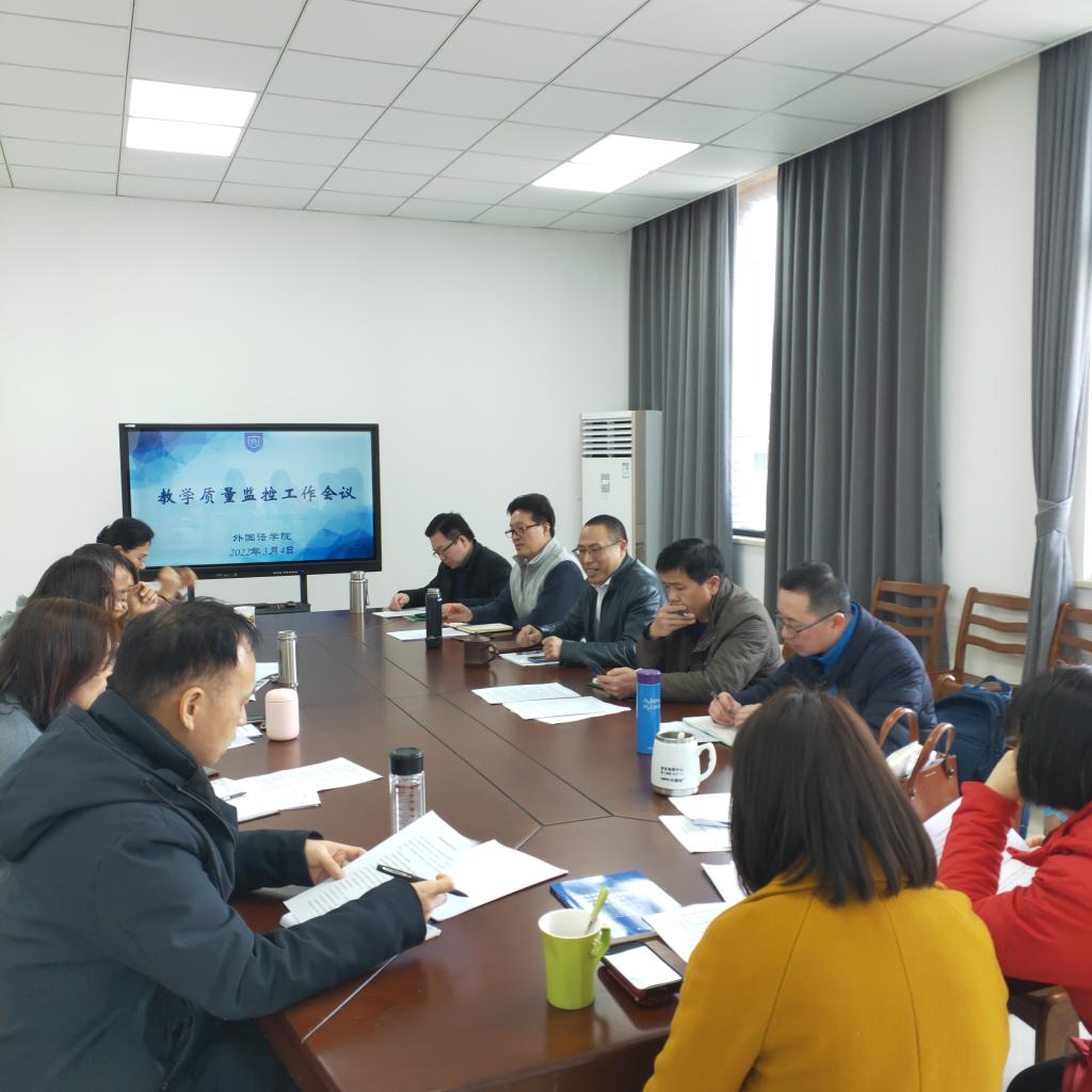 为进一步提高学院教学质量,加强同人漫画 教学质量监控,增强教师教书育人意识,同人漫画 于2022年3月4日下午在兴德楼516室召开本学期教学质量监控工作会议。同人漫画 院长唐艳芳、副院长喻锋平、副院长郭永恩、英语系专业负责人陶丹玉教授、督导组成员周红教授及督导组其他成员、各系部正副主任参加了会议。会议由副院长喻锋平主持。