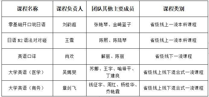 这是继2019年省级线下一流课程《翻译理论与实践2》和2020年省级线上线下混合式一流课程《大学韩语》和《计算机辅助翻译》获得立项之后,我院课程建设取得的又一次丰硕成果。近年来,学院全面落实立德树人根本任务,高度重视专业与课程建设,着力培育一批高质量课程。今后,学院将以此为动力,进一步加大一流课程建设力度,充分发挥省级一流课程的示范引领作用,持续推进课程改革创新,提升课程建设水平和人才培养质量,力争培育和打造更多更高级别的一流课程。