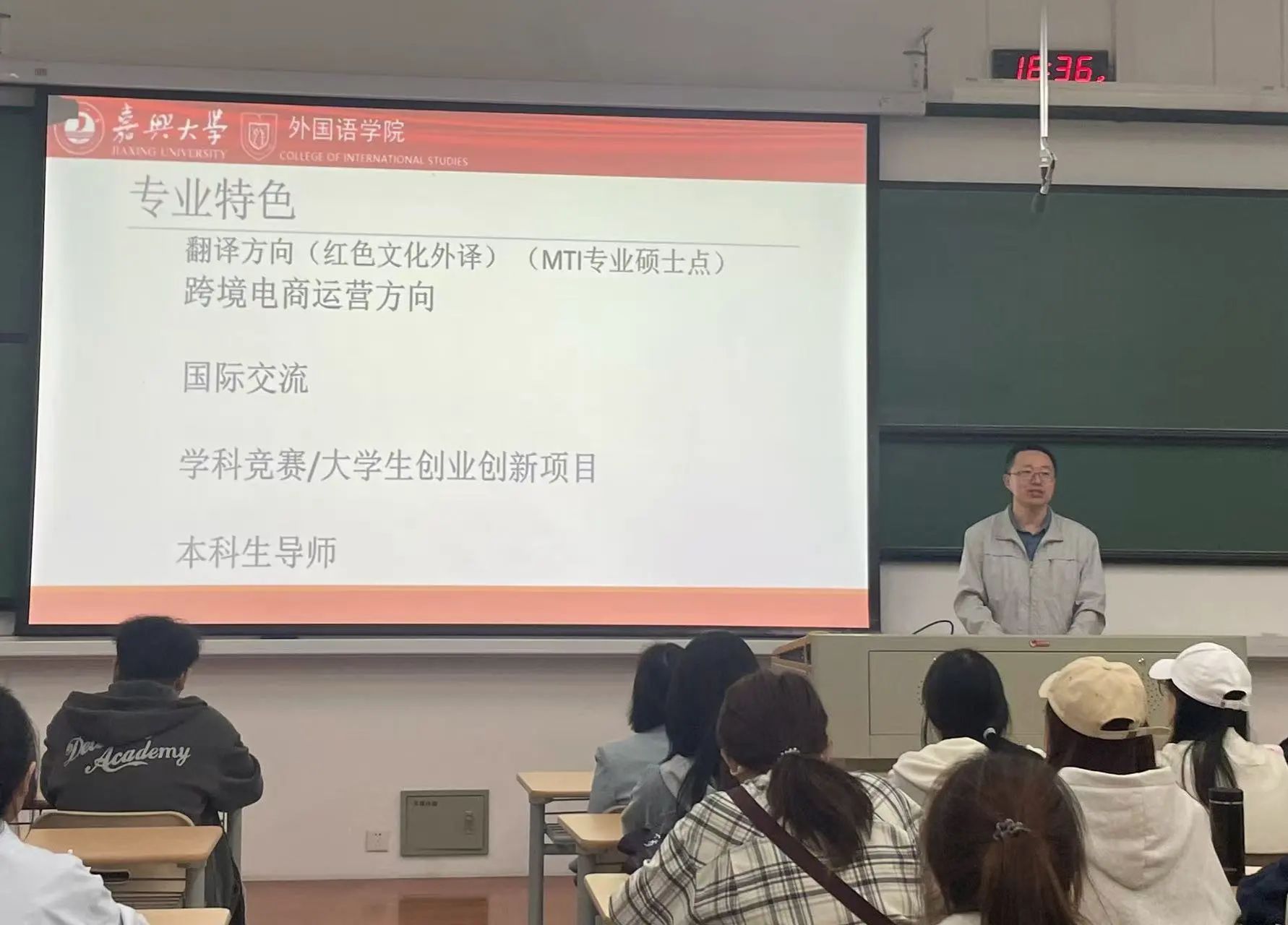 随后,鲁俊丰细致讲解了大学英语四六级及英语专业四八级等考试的情况,建议新生们从大一起就确立明确的奋斗目标。陈丽向学生们介绍了外院外籍教师的整体情况和学校的外语角活动,鼓励他们走出自己的舒适区,勇敢创造机会练习英语口语。杨迎春从兴趣培养、技巧运用、听力水平提升计划等方面着手,手把手教授学生们如何循序渐进提升听力水平。
