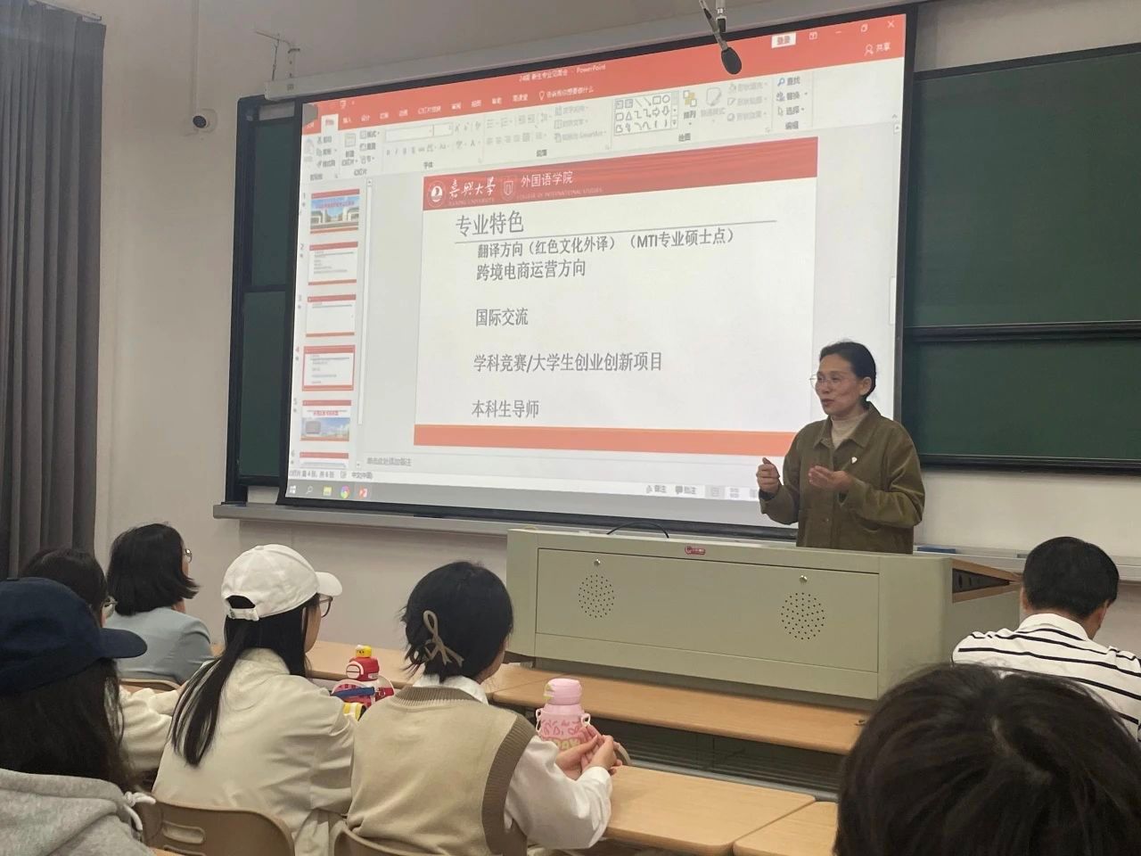 活动伊始,潘宁宇从师资力量、国际交流、学科竞赛、科研创新项目、本科生导师制等多个方面向大一新生们介绍专业特色,帮助大家了解英语系的总体情况,以便在今后专业学习中更好有的放矢。
