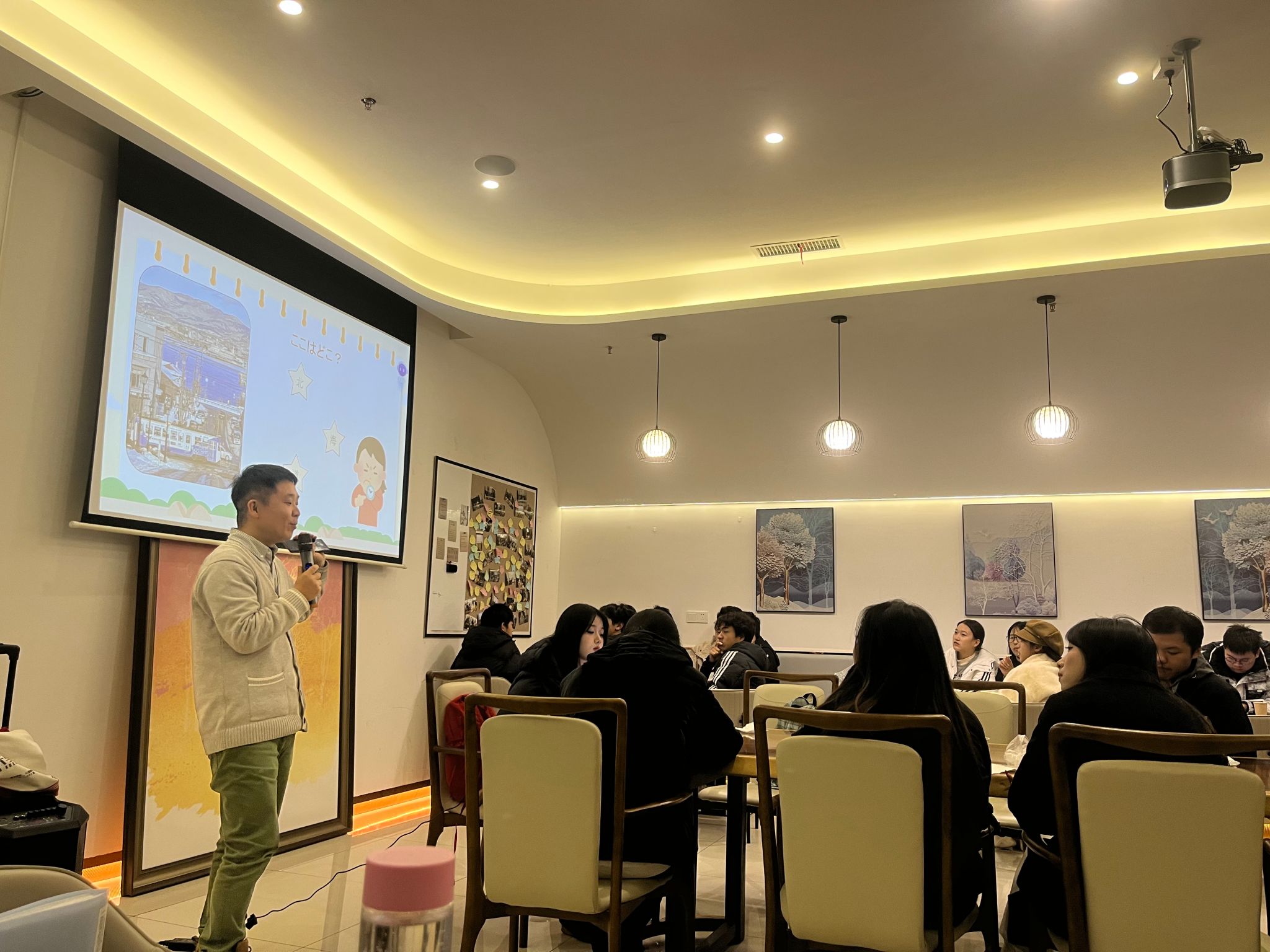 之后的“看图猜谜”游戏环节,通过展示东京浅草寺、奈良公园、横滨中华街等照片,引发了同学们对日本地理文化的兴趣,活跃的竞答形式也将本次活动推向了高潮。紧接着,同学们就“如果你拥有超能力的话,想要去哪里旅行?”“你最难忘的旅行地”以及“旅行中最棒的美食体验”等话题展开了自由讨论。