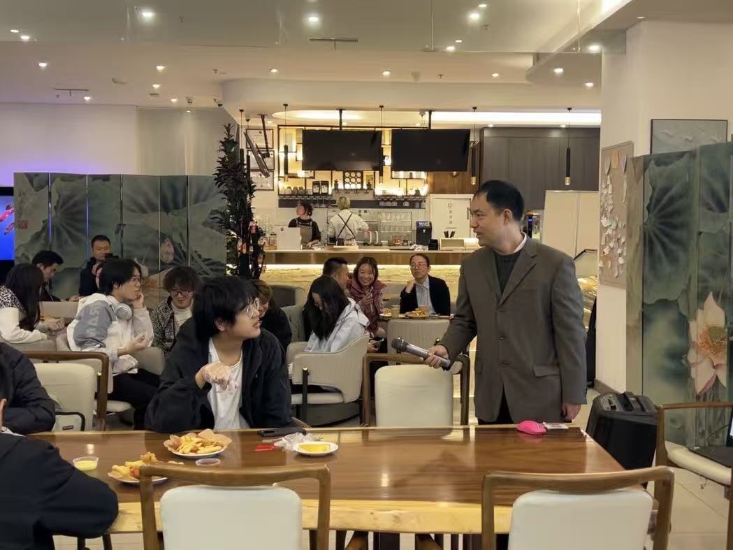 畅宝仁老师以精妙的切入点,引导同学们跳出 “被动学习” 思维,深入思索未来职业发展方向。他结合当前就业市场的整体态势,凭借详实的行业数据与毕业生真实案例,将抽象的就业环境转化为直观生动的场景化讲解,有效化解了同学们对 “就业难” 的迷茫感。随后,他紧扣学生专业背景抛出一系列实操性问题,与同学们展开深入互动;在一问一答的思维碰撞中,大家对职业定位、职场核心能力、行业选择等关键议题,逐步构建起更全面、清晰的认知框架,不少同学当场记录下思考要点。