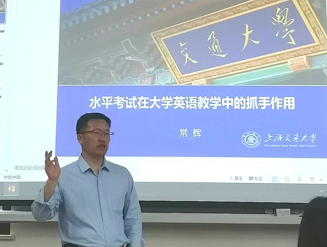 2023年5月18日下午,上海交通大学同人漫画 常辉教授应邀为我院教师作“水平考试在外语教学中的抓手作用和反拨效应”的讲座。讲座在兴德楼南205举行,由唐艳芳院长主持,学院大外部和英语专业部分老师参加了本次讲座。
