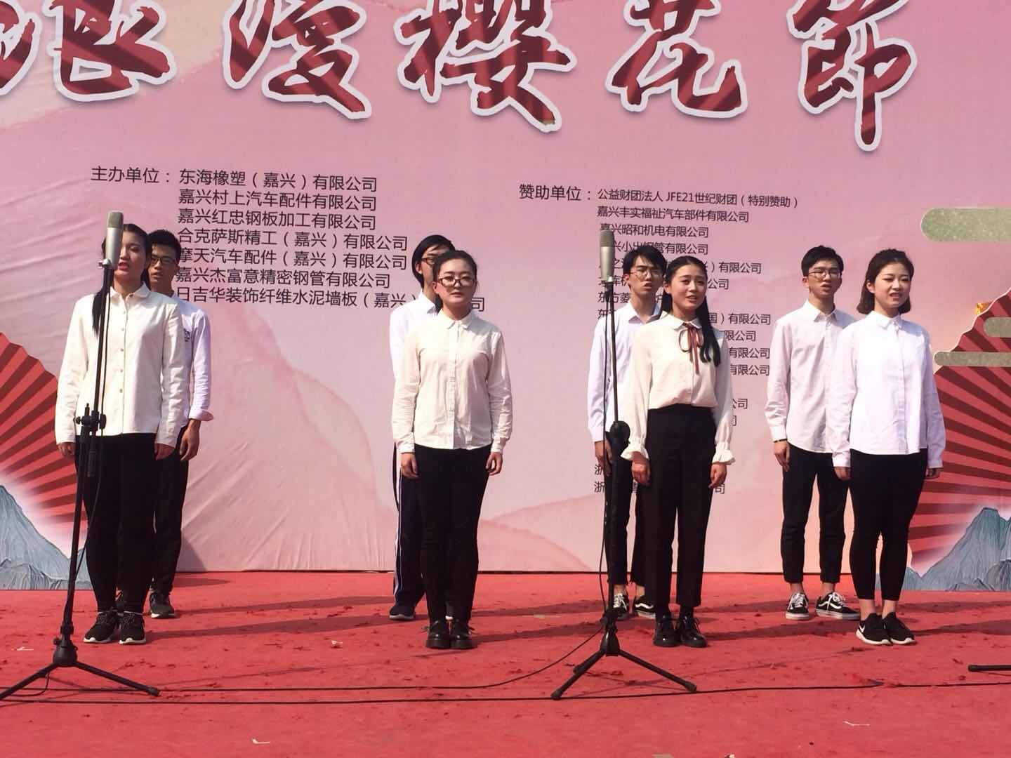 2018年3月24日,历时一周的第九届“浪漫樱花节”在嘉兴岗山路东海橡塑公司院内隆重开幕,来自嘉兴经济开发区的领导和上海驻日领事馆官员悉数前来,我院郭永恩副院长、外事处李月顺副处长和日本外教以及17级学日语专业生应邀参加。