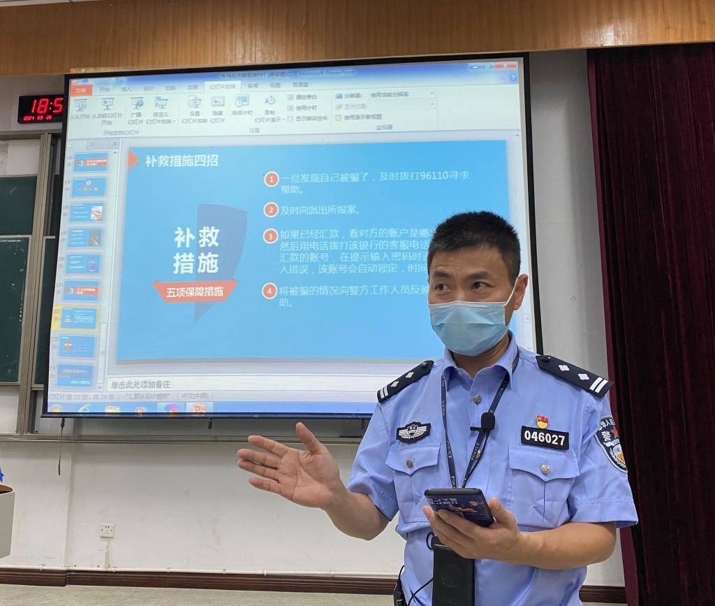 为增强我院新生的安全意识,提高新生的安全防范技能。9月26日晚,同人漫画 邀请到城南派出所四级高级警长张秋江警官为2021级新生开展安全教育讲座,进行反诈宣传以及安全防范教育。