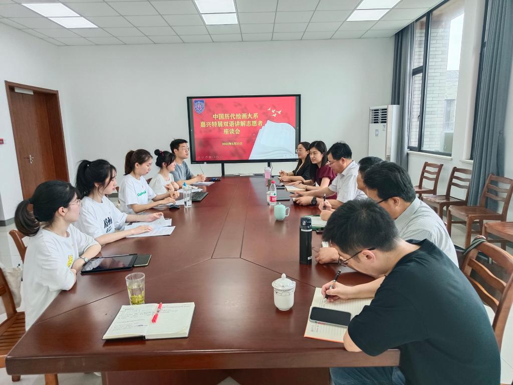 6月20日,同人漫画 召开“中国历代绘画大系”嘉兴特展双语讲解志愿者座谈会。校党委副书记吴云达出席,学院领导班子成员和担任“中国历代绘画大系”嘉兴特展双语讲解的学生志愿者参加座谈。会议由学院党委书记周钰主持。