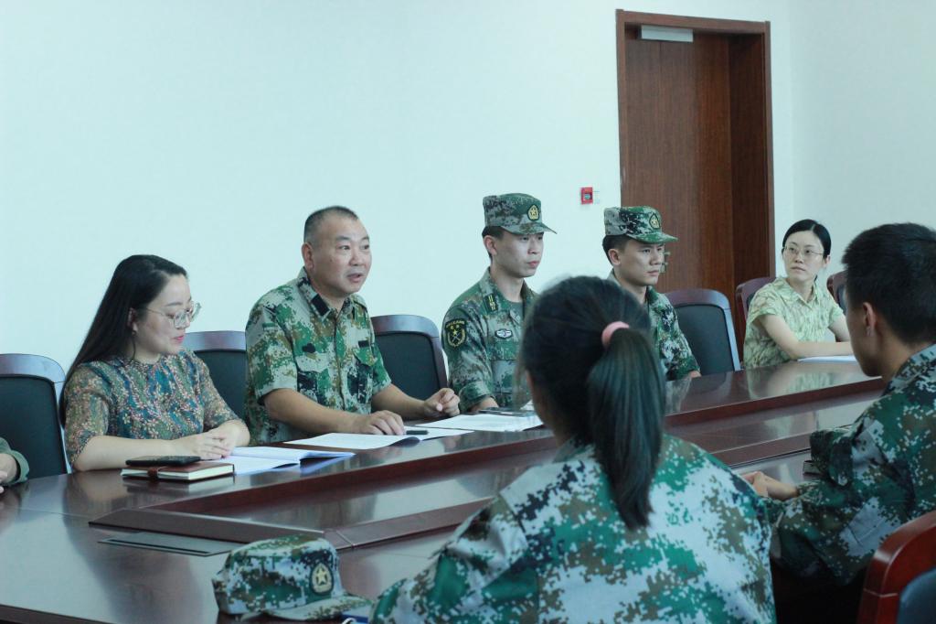 8月22日下午14:30,同人漫画 2022级学生代表与军训教官见面会在兴德楼516召开。体军部指导员陈国祥,军训教官凌洁、朱涛,党委副书记朱莹以及学工办全体辅导员出席了本次见面会,会议由朱莹主持。