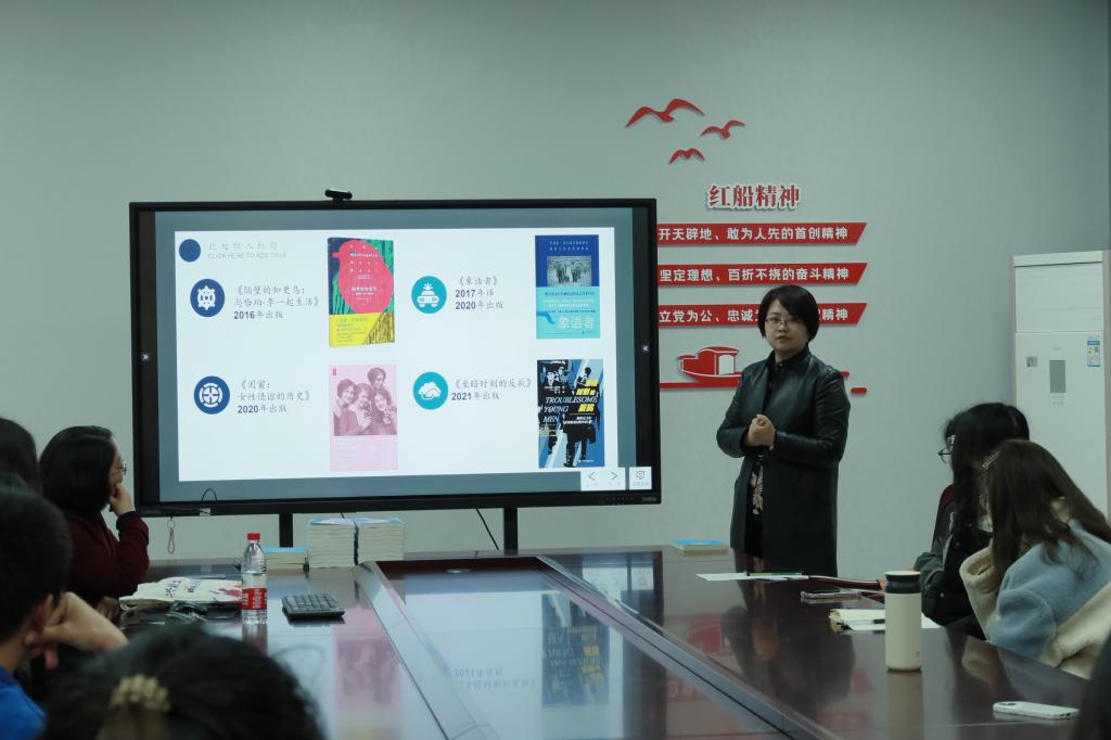 活动伊始,张宇老师温雅地问候了在场的同学们,娓娓谈起她翻译的第一本书——《最后的礼物》。张老师向大家分享了自己第一次翻译经历。她说,在第一次全程参与书籍的出版中,才知道何为“宁养”,真正了解译者之苦。此外,张老师还给同学们分享了她的另外四本译著,每一本都带着一段回忆,或青涩稚嫩,或发人深省。她热切地告诉在场的同学们“生活不止眼前的苟且,还有诗和远方。”