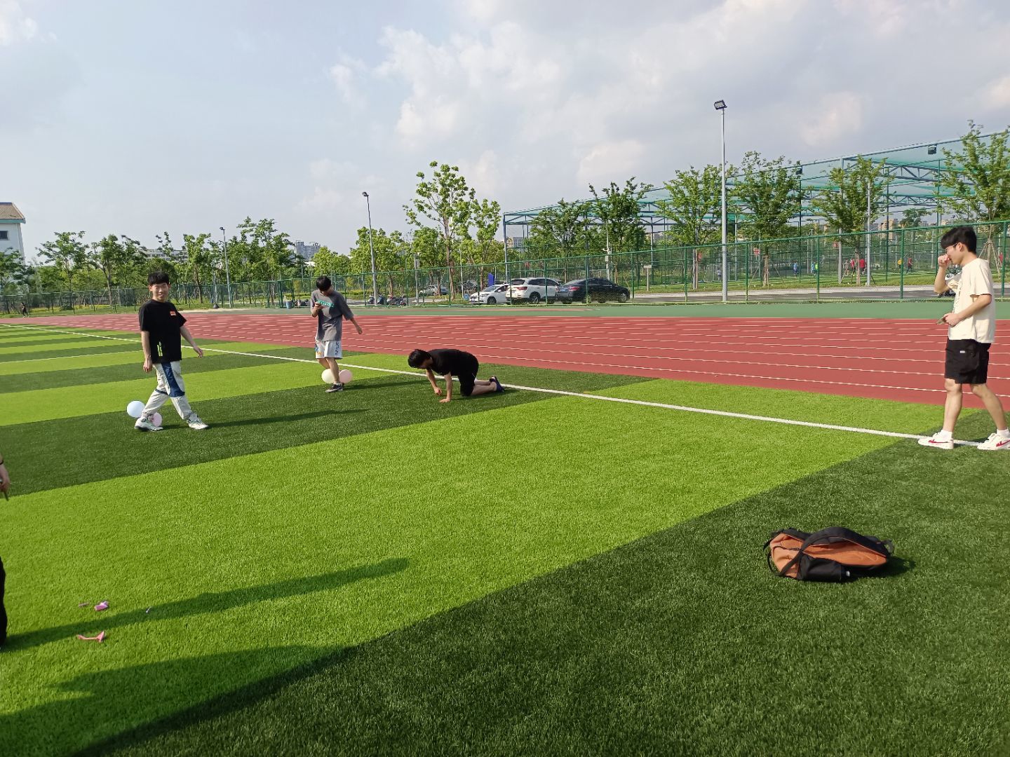 本次活动共分为三个部分:首先是预热的集体游戏“飞机头”,活动目的是通过同学之间的互相配合,使他们感受人与人之间的互相信任,同时也激发同学们的游戏兴趣和激情。第一部分结束后,现场的同学们很快摆脱了紧张的情绪,进入了游戏状态。到了“气球爆破”游戏环节,每位同学首先需要在他人的帮助下将两个气球绑在腿上,游戏开始后,同学们以挤破对方腿上的气球数量多者获胜。在一声声清脆的气球爆破声中,同学们的兴致达到了高潮。最后进行的是“你我的歌”小游戏,该游戏先将同学分为三组,每人分别唱出自己纸条上的歌曲来寻找和自己同组的小伙伴。