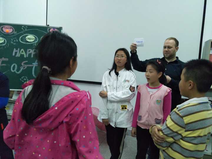 为了让小学员们了解和体验多种文化和习俗,同人漫画 社会培训与服务中心邀请了美籍教师Patrick,与中教一起在4月21日给少儿英语培训班学员带来了丰富有趣的英语主题活动。这一天,新概念II级班的孩子们在活动与游戏中参加了一场另类的考核;这种寓考于乐的方式,深受欢迎孩子们欢迎。