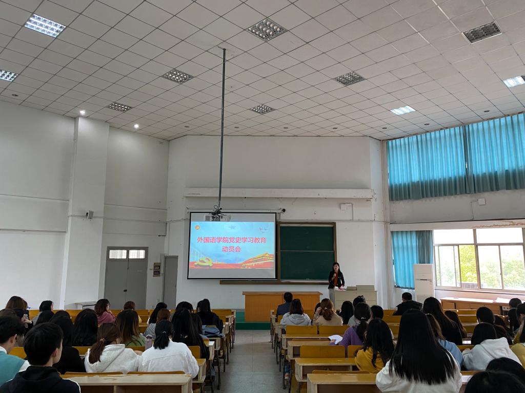 4月1日,同人漫画 在外语楼310召开党史学习教育动员大会。动员会由学院党委书记周钰主持,全体教师和学生党员参加。