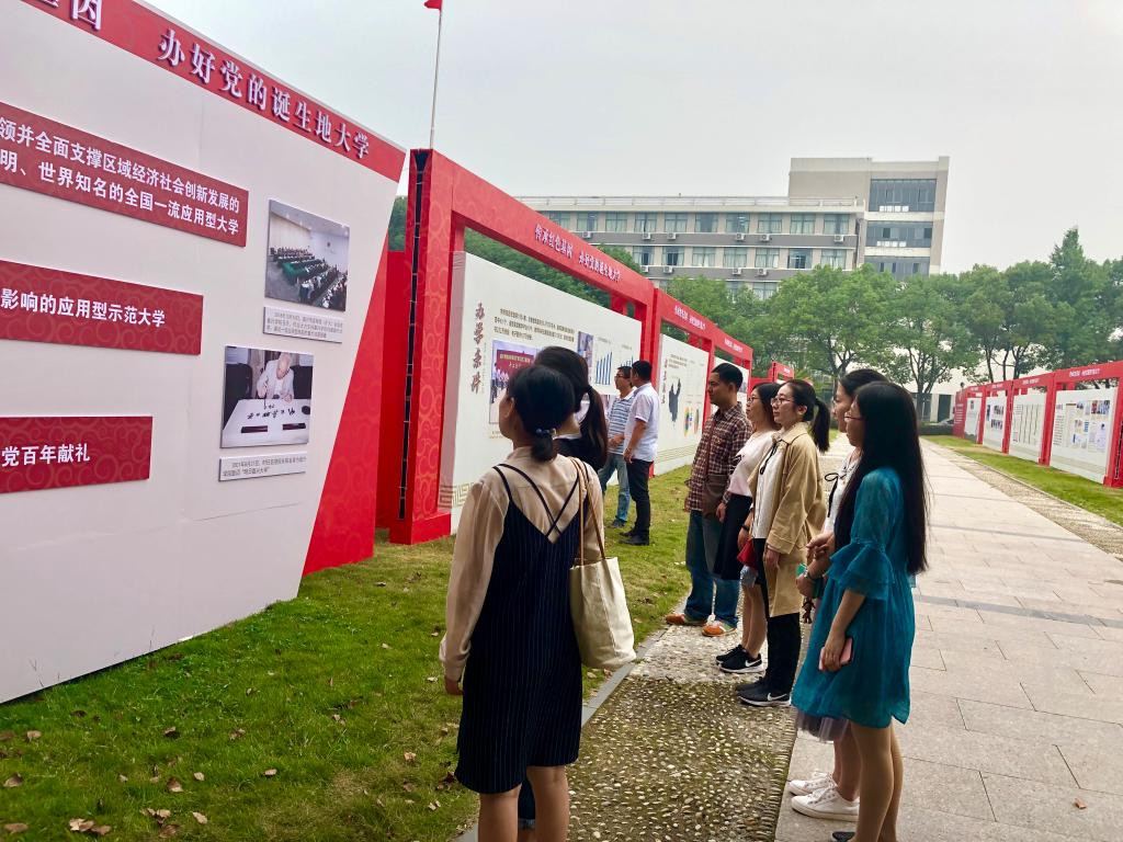 最后,孙玉慧带领党员们到越秀校区文化广场观看了“学校发展史与展望——传承红色基因,办好党的诞生地大学”展览。