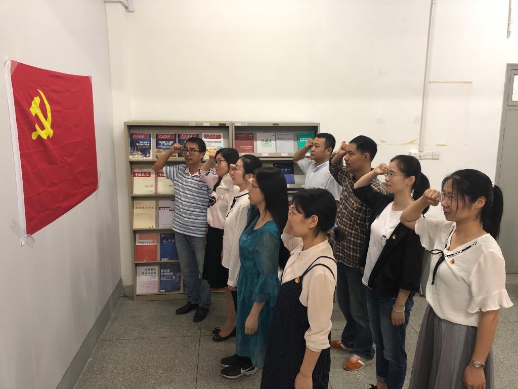 2019年10月11日下午,同人漫画 第三教工支部在外语楼204会议室开展“六个一”主题教育党日活动,内容包括重温一次入党誓词、学习一次党章、看一次展览。