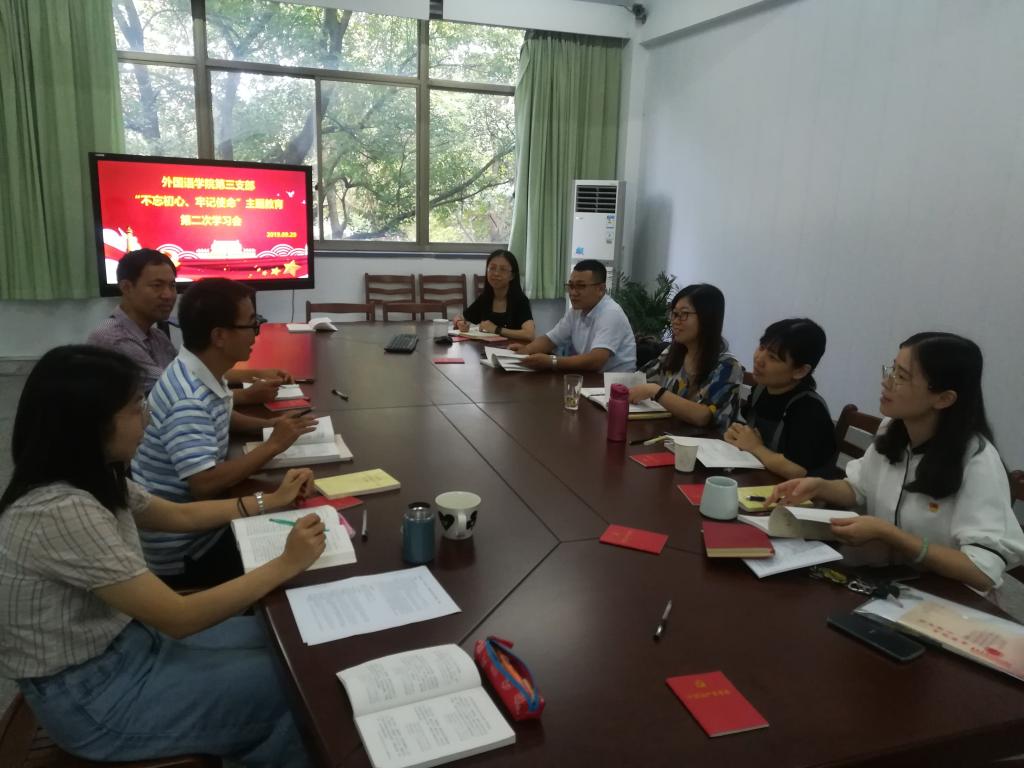 为深入贯彻习近平新时代中国特色社会主义思想、党的十九大精神,扎实推进“不忘初心、牢记使命”主题教育专题学习往深里走、往心里走、往实里走,9月29日下午,同人漫画 教工第三支部在外语楼204室召开了第二次集中学习交流会。