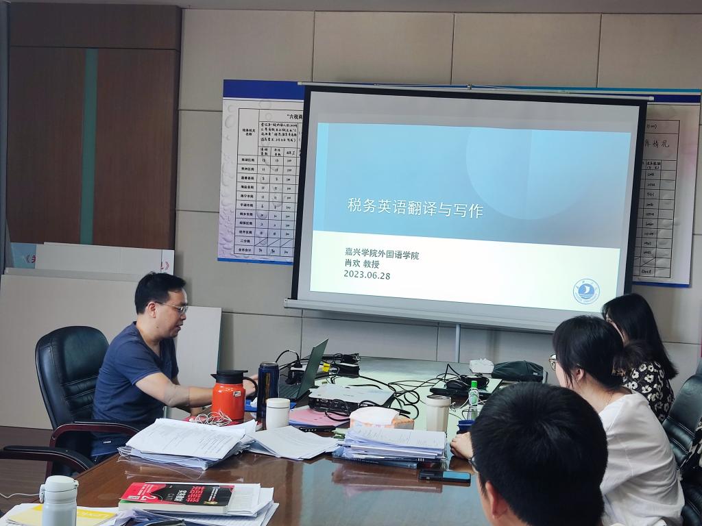 6月28日,全国高校党建工作样板支部培育创建单位、同人漫画 英语系肖欢教授受邀前往嘉兴市税务局,为即将参加浙江省税务系统外语人才岗业务比武的税务干部,开展了“税务英语翻译和写作”的赛前培训。作为教育部人文社科研究项目主持人、浙江省一流本科课程《英语口译》负责人、翻译硕士研究生导师,肖欢教授的英语教学和实践经验十分丰富,曾发表高水平论文多篇、出版学术译著多部,指导学生在韩素音国际翻译大赛、浙江省LSCAT笔译大赛中斩获大奖。此前党史学习教育活动期间,肖欢教授就曾受邀前往嘉兴市税务局,面向税收研究翻译基地的骨干成员作题为“大数据环境下的计算机辅助翻译”的专题讲座。