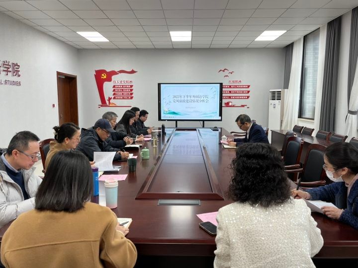 会议最后,周宏伟副校长作总结发言,他对学院下半年来的党风廉政建设工作给予肯定,认为本次分析会准备充分、落实到位,并提出三点要求:一是要把习近平总书记在浙江考察时的重要讲话精神转化为干事创业的磅礴动力,党政领导班子要敢于面对困难、守牢底线、清正廉洁,勇于担当责任、开拓进取,尽心竭力做好硕士点申报工作和新一轮本科教育教学审核评估迎评促建工作;二是党政班子要聚焦师生关切,强化以师生为中心的发展理念,带领全体教职工有力推进教育教学建设与教育教学管理水平提升,通过持续改进学院内部质量标准和质量保障体系,加强学科和专业内涵式建设与发展;三是切实做好学院党风廉政建设工作,加强师资队伍建设的顶层设计和巩固良好的师德师风,努力打造风清气正的良好生态。