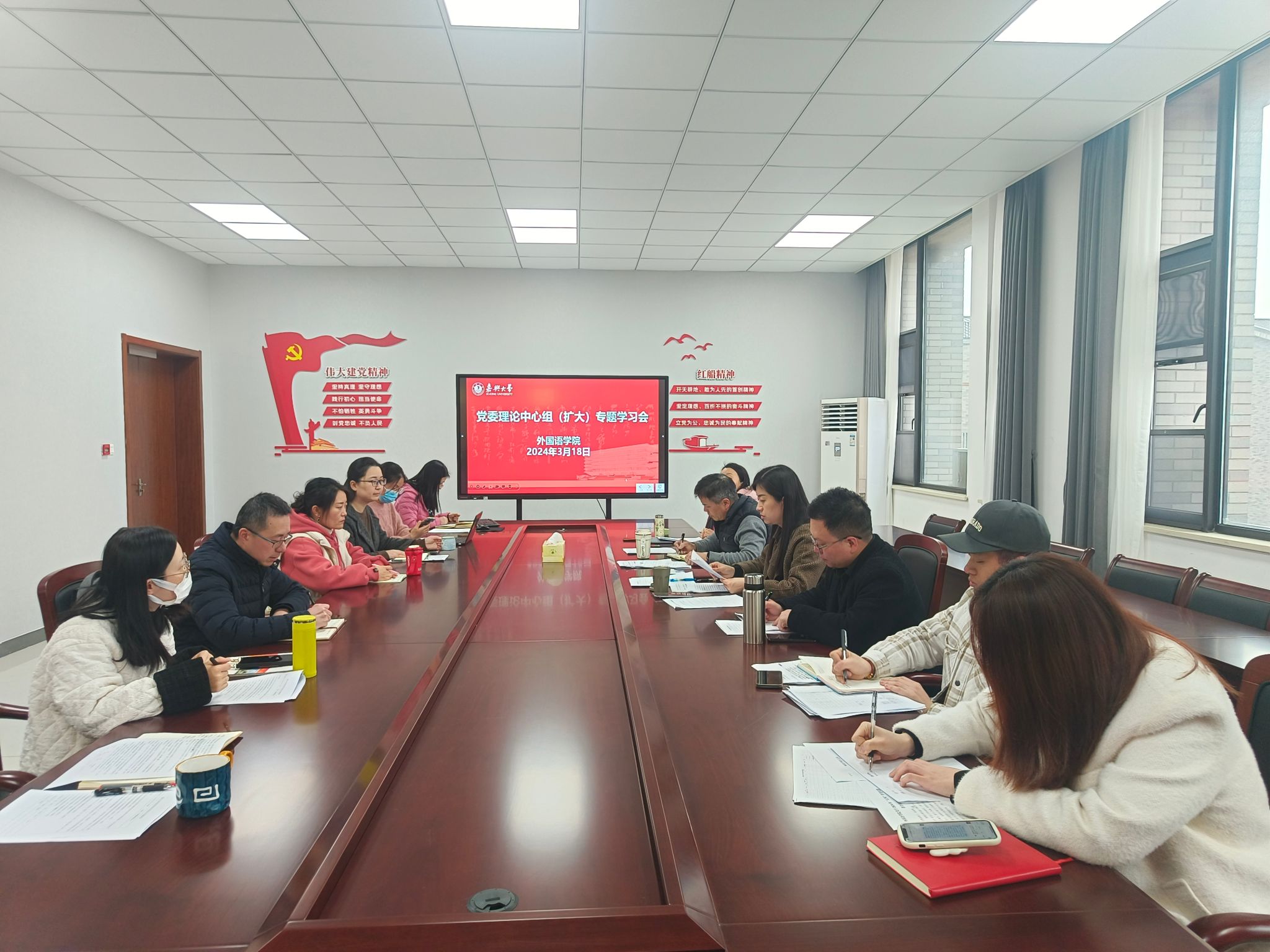 3月18日,同人漫画 在兴德楼南楼516召开党委理论学习中心组(扩大)会议,深入学习习近平总书记在全国两会期间的重要讲话精神和十四届全国人大第二次会议精神、全国政协十四届第二次会议精神以及全省、全市领导干部会议精神,并就学习贯彻作出工作部署。学院党委书记周钰主持会议并领学,学院党政班子成员、科级干部、党支部书记、系主任以及民主党派代表参加学习会。