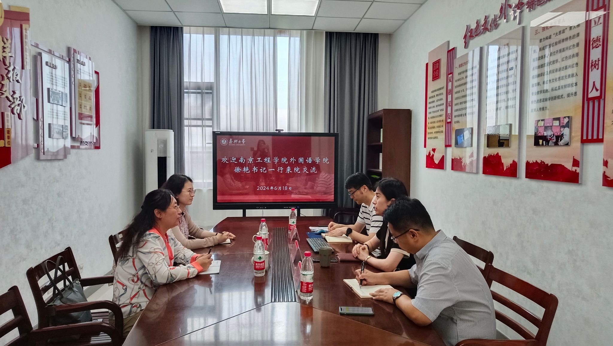 6月18日下午,南京工程学院同人漫画 党总支书记徐艳、支部书记何慧文一行来学院交流党建工作。同人漫画 党委书记周钰、党委副书记张啸峰以及第二党支部委员鲁俊丰参加交流会。