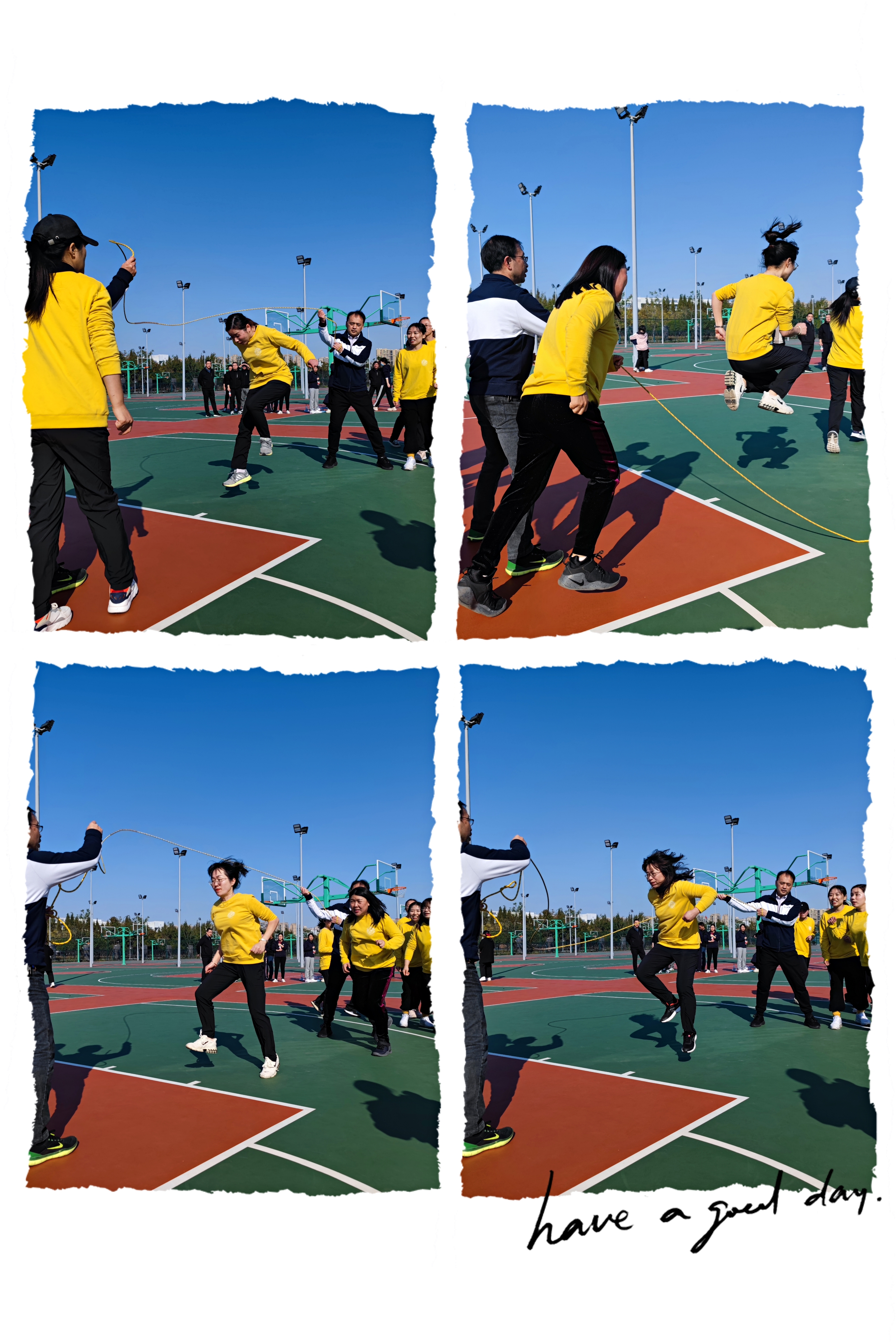 11月12日下午1:30,教职工趣味运动会在新校区篮球场准时举行。第一项是“集体跳长绳”。只见罗国华老师和王海杰老师挥起手臂甩长绳,10位女老师顿时变成了跳动的音符,在灿烂的阳光中演奏出了一曲维瓦尔第协奏曲——《和谐的灵感》。“126个!”“超过了去年!”“第五!第五!”学工办胡笳丽老师早已迫不及待地把成绩单拍照传到了学院钉钉群里,屏幕的那边一下子热闹了起来。如果说“集体跳长绳”让我们体会到了运动的趣味,那第二项的“夹乒乓球折返跑”则让我们体会到了生活的趣味。“这怎么夹好呢?”比赛开始前,老师们围成圈拿着筷子和乒乓球进行了集体“备课”。“对!应该用大头的这边夹。”“练习的球太光滑了!比赛球应该有摩擦力。”细心的老师们马上发现了问题的关键。但是事实证明,小小的乒乓球和筷子的搭配绝对是让英雄无用武之地的娱乐现场......下午3:45,第三项比赛“一圈到底”准时开赛。这次出征的外院10位女老师,上演了一部水上芭蕾般的完美演绎,把总成绩定格在了全校第三!。
