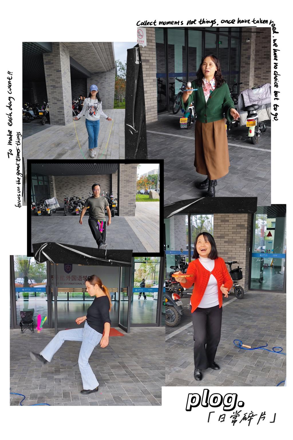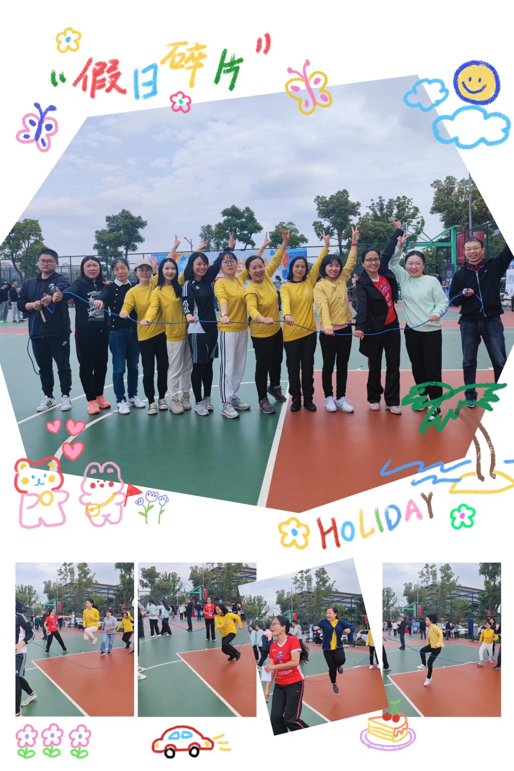 11月4日上午9点校教职工趣味运动会在梁林二期篮球场准时举行。因为除了集体跳长绳这个传统项目外,今年趣味项目都是新项目,老师们既期待又紧张。上午9点第一项是“20米身手敏捷接力”。5位男老师和5位女老师组成的接力队分别要在三个区域完成“跳绳”“踢毽子”和“弯腰旋转三周”。赛场外,同人漫画 学生啦啦队早已蓄势待发,一声令下篮球场顿时沸腾了起来。下午2点开始传统项目“跳长绳”比赛,由2位男老师负责甩绳,10位外院女将跳长绳。在灿烂的阳光中10位女老师秒变快乐的音符,演奏出了一曲维瓦尔第协奏曲——《和谐的灵感》。