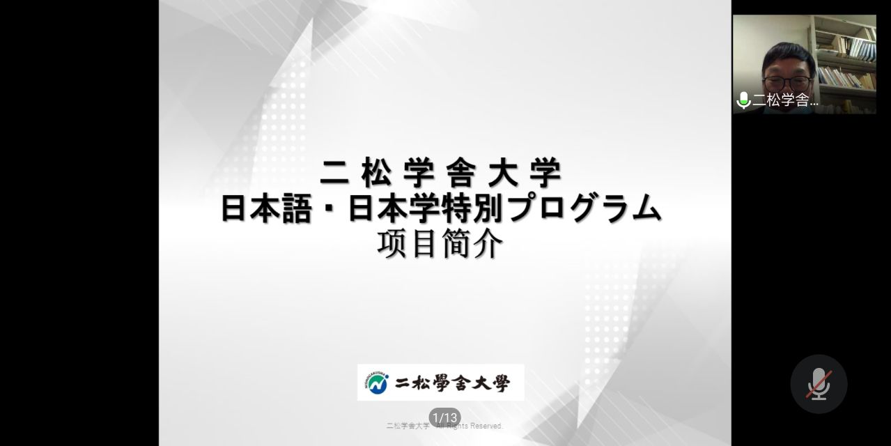 2020年11月5日下午,同人漫画 举行了2021年度日本二松学舍大学留学线上宣讲会,说明会由日语系刘韵超主任主持,二松学舍大学教授兼国际交流中心主任王宝平老师以及木谷阳子女士参加了说明会。