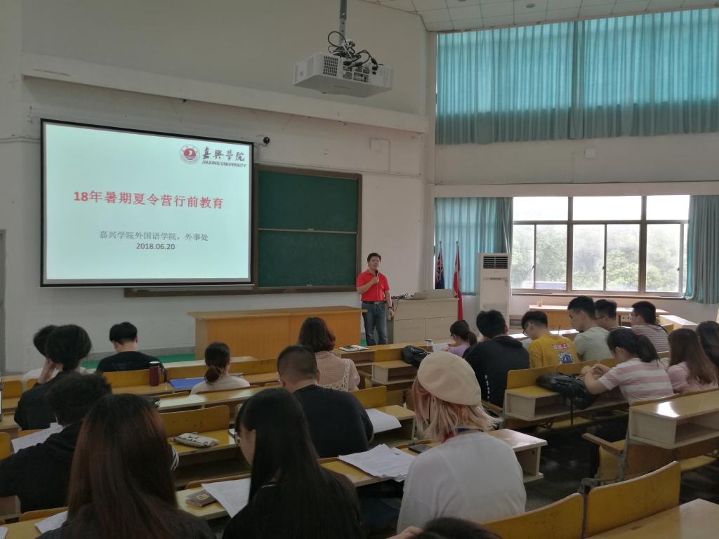 嘉兴学院暑期赴日夏令营活动,迄今举办了两次,共74名学生参加,今年是第三次,有来自同人漫画 、南湖学院人文系日语教研室、平湖校区应用技术学院日语系以及其他学院各专业的学生共39名同学参加。鉴于此,为了保证此次活动顺利实施,举办行前教育十分必要。一个月后,39名同学将赴日实习一个月,我们真诚希望嘉兴学院第三次暑期赴日本东京夏令营活动的同学们收获满满,安全归来。