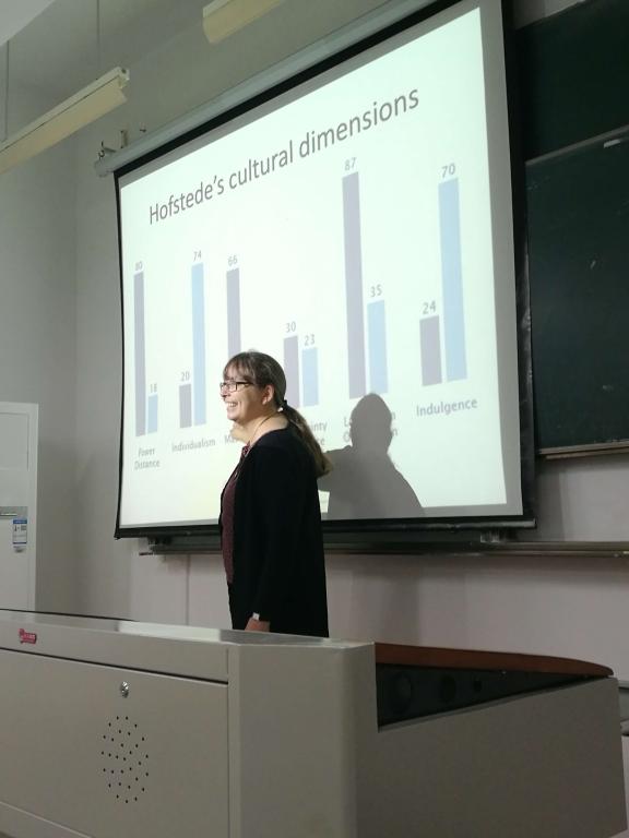 10月26日晚,PBL国际化教学实验班邀请到丹麦奥尔堡大学中国研究中心Ane Bislev(毕安娜)博士给本校2017届PBL教学团队和实验班同学们做了一场关于“如何在跨文化沟通环境中实施PBL教学模式”的讲座。安娜博士重点介绍了荷兰文化研究学者霍夫斯塔德(Geert Hofstede)提出的“文化维度(Cultural Dimensions)”理论,以奥尔堡大学为例,运用丰富的案例围绕跨文化沟通问题分析了PBL教育模式在教学过程中遇到的问题并提出相应解决方案,定位了教师和同学们在教学过程中的角色,并对同学们感兴趣的如何为留学做准备和如何化解文化冲突等问题进行了深入探讨。