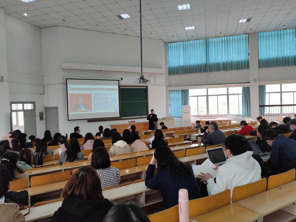 4月15日下午,同人漫画 邀请嘉兴市南湖区新兴街道派出所计福荣警官在外语楼310做反诈骗专题培训。学院全体教师参加培训会,培训会由党委书记周钰主持。