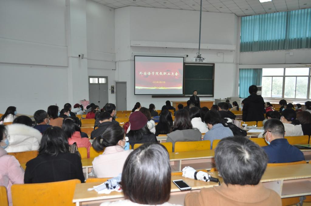 2月27日上午,同人漫画 在外语楼310召开2021年第一次全体教职工大会,谋划部署新学期开学工作。会议由院长唐艳芳主持,学院全体教职工参加。