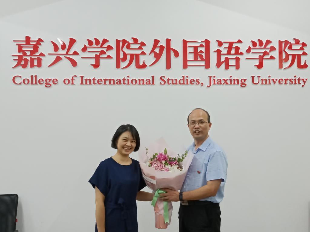杨培强校长为同人漫画 优秀教师丁澜澜送上节日礼物,感谢丁澜澜老师这些年来一直坚持教学第一线,积极参加教学改革和课程建设,并向丁老师在课程建设方面取得的优异成绩表示热烈祝贺,希望丁澜澜老师能持之以恒走教学改革创新之路,上好每堂课,做精韩语特色课程,争取获评国家级精品在线课程。杨校长还代表学校向同人漫画 全体教师致以诚挚的节日祝福,并希望同人漫画 全体教职工一如既往支持学校工作,为申硕创大贡献外语人的力量。
