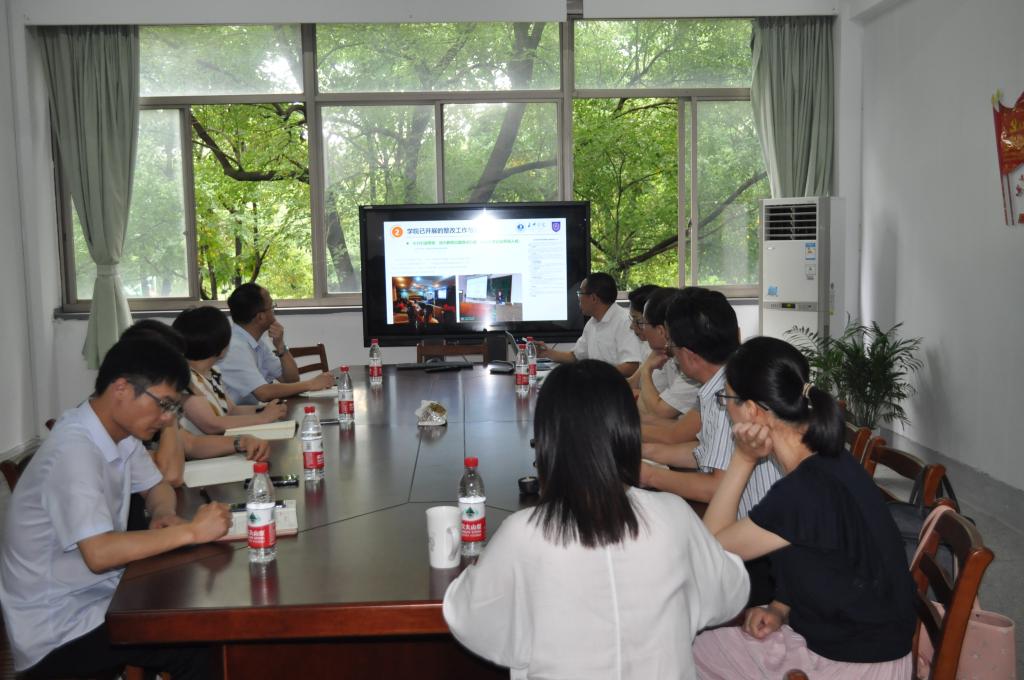 副院长喻锋平首先根据学校本科审核评估“回头看”的工作要求,汇报了学院在评估工作中发现的问题与不足、已开展的整改工作与措施、评估整改工作自查情况,重点介绍了学院今后在打造以“红船精神”为引领的外语专业特色人才培养体系、加强国际化教育、加大教学改革和课程建设等方面的工作举措。