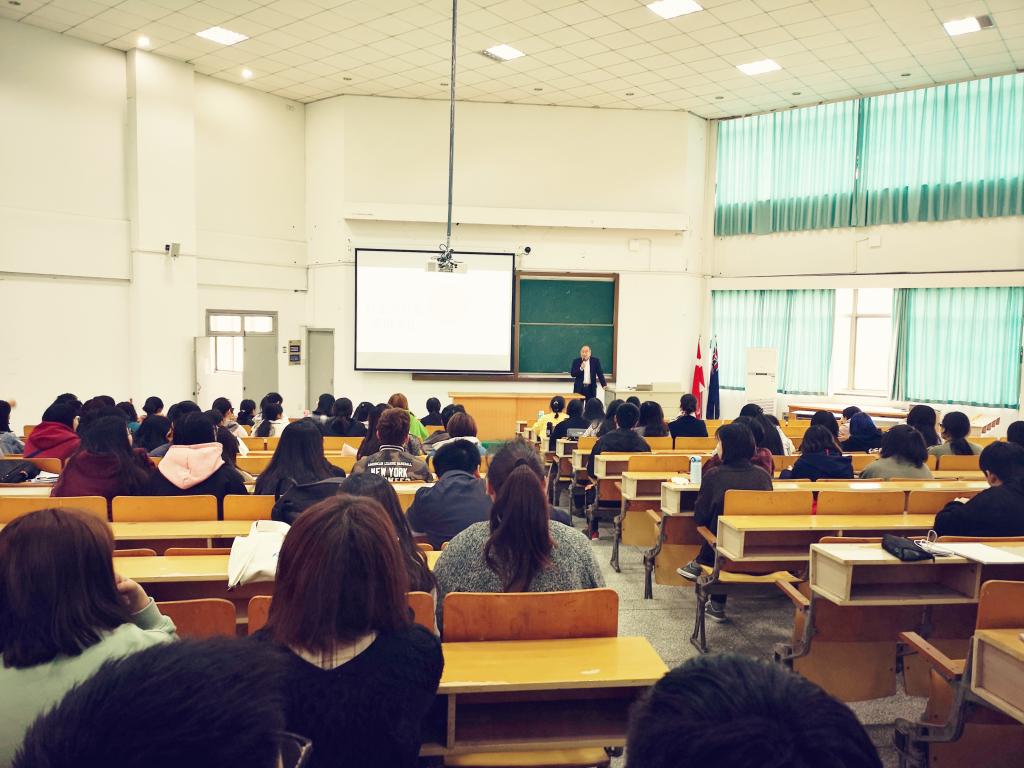 讲座吸引了众多的日语专业师生,英语专业的老师也慕名而来。秦教授考虑到听众的“多样性”,使用日语做了简单的介绍之后,便用中文开始讲座,其中穿插了许多日语和日本相关的知识。“日本大吗?”,秦教授由此切入,开始了他充满了知识量和趣味性的讲座。内容涵盖“鞠躬的角度”、“寒暄的习惯”、“啰嗦的敬语”、“敲门次数”等,秦教授讲解生动,大家屏息凝听。