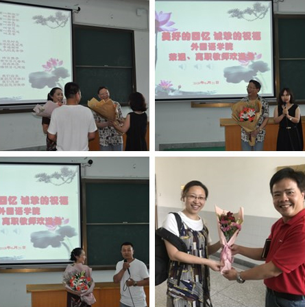 6月21日下午,外语楼310报告厅,空气里洋溢着满满的幸福和欢乐,同人漫画 全体教师齐聚一堂,隆重欢送徐红、刘少萍两位老师光荣退休和顾敏老师离职攻读博士。