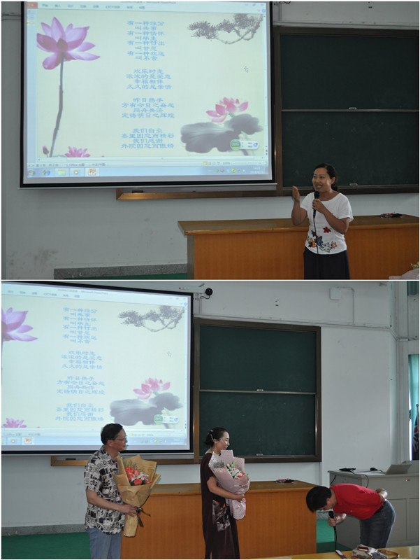 徐红、刘少萍两位退休教师也分别畅谈了自己的退休感言,回忆了他们在教育岗位上工作的心路历程和人生感悟,字字句句流露出对昔日同事一起工作美好时光的留恋,并对学院领导的关怀、同事的关心帮助表示感谢。