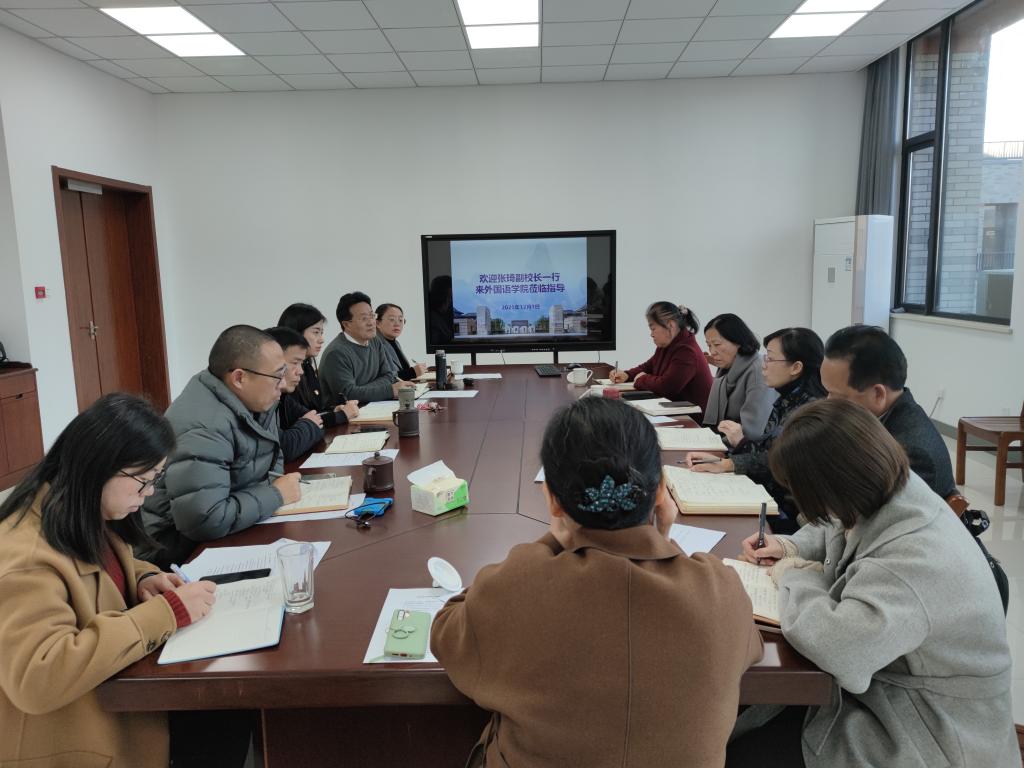 副院长喻锋平从专业建设、课程建设、教师发展和创新实践4个方面汇报学院教学工作;英语专业负责人陶丹玉从英语专业现状及特色优势、存在的问题和短板、专业建设规划目标以及专业建设的思路和举措汇报了英语专业建设情况;副院长、日语专业负责人郭永恩介绍了日语专业发展的基本情况、专业建设的特色和优势、毕业生评价和用人单位评价、专业建设的举措和目标以及制约专业发展的相关要素;党委副书记朱莹汇报了学生创新创业工作开展情况、取得的成果、存在的困难以及对于创新创业工作的展望;院长唐艳芳就学院专业招生规模、预科班管理、专业建设的经费保障、师资队伍建设、国际化专业建设等方面存在的困难作了现场交流和探讨。