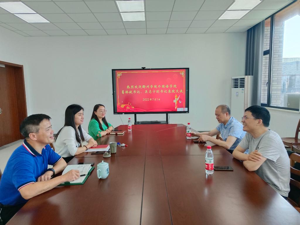 7月1日下午,衢州学院同人漫画 党委书记葛林波、党委副书记吴志宁来学院考察交流。学院党委书记周钰、院长唐艳芳、党委副书记朱莹出席交流会。