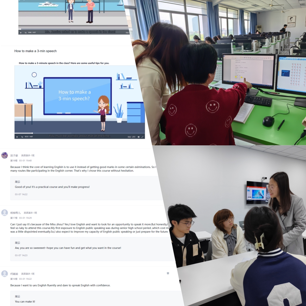多次获得教学竞赛奖项、学评教排名前列的吴嫣婓和周云两位老师都喜欢使用超星平台。吴嫣斐老师善于结合平台上的学习任务和大学英语四六级的考试要求、难点,对学生进行有针对性的线下答疑辅导,助力学生考级,以考促学。周云老师则善于自制微课上传平台,用动画方式生动有趣地为学生答疑解难,她还通过“主题讨论”板块随时随地与学生互动交流,使线上线下的教与学紧密结合。