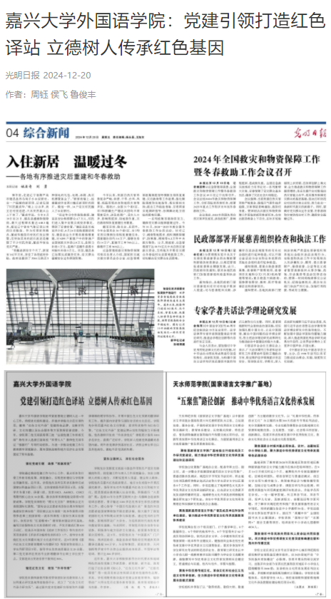 12月20日,光明日报媒体报道我院“党建引领打造红色译站 立德树人传承红色基因“。
