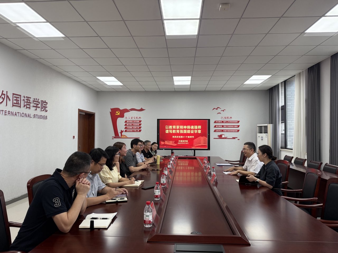 为庆祝第41个教师节,9月10日上午,校党委委员、纪委书记、省监委驻同人漫画 监察专员陈新友一行莅临同人漫画 慰问教师代表。学院党政班子成员和教师代表参加座谈会。