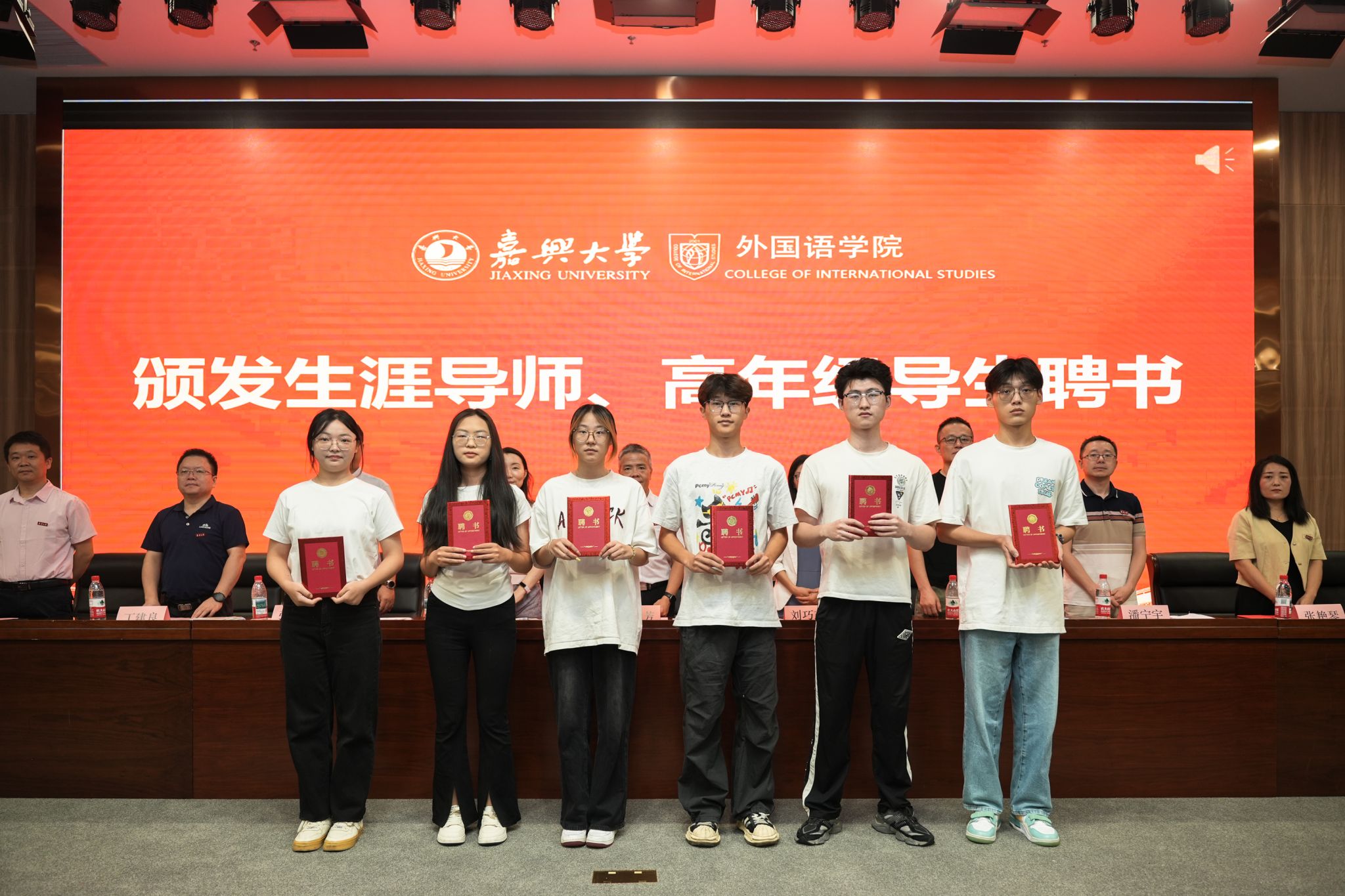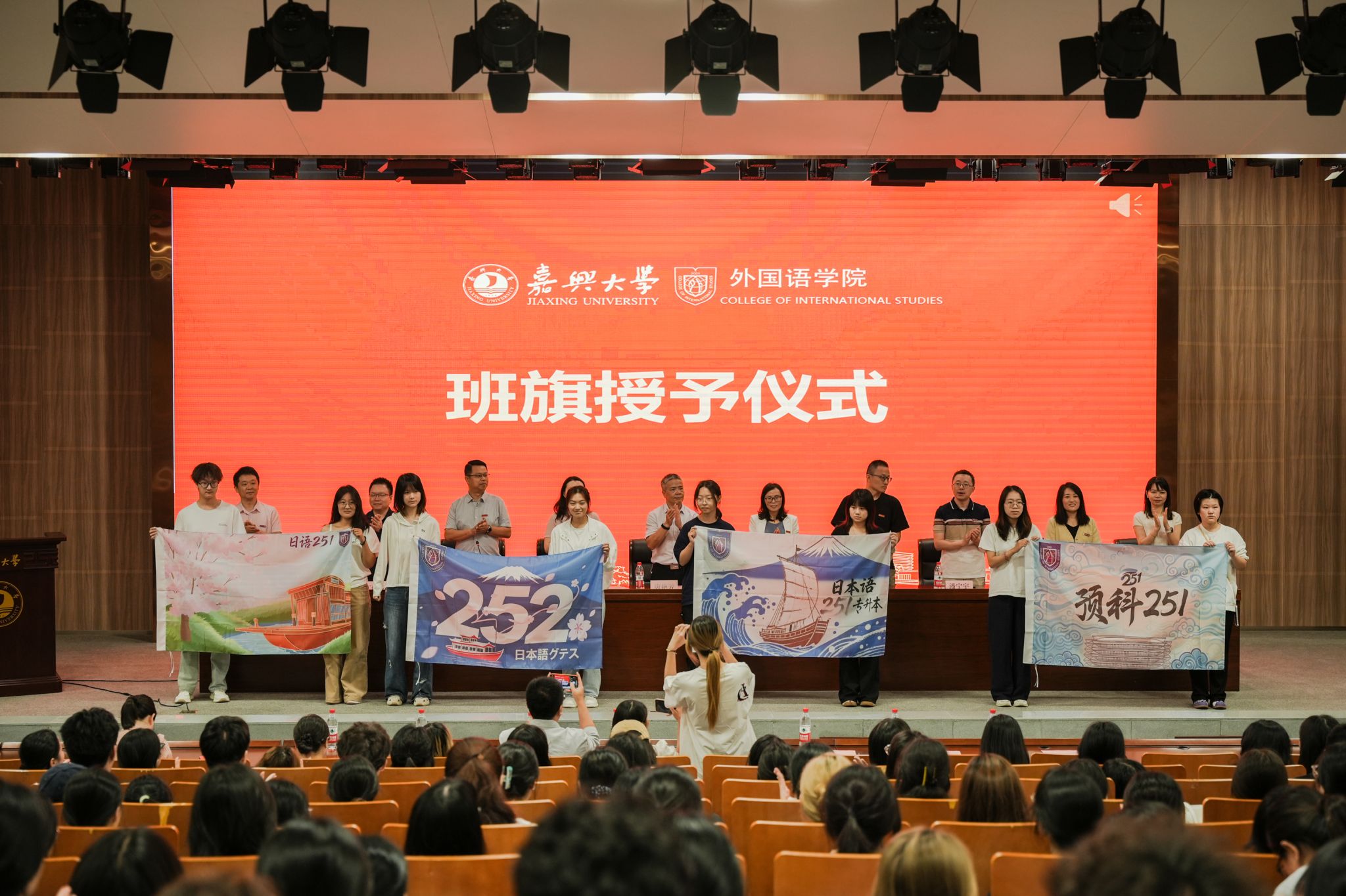 典礼现场,学院还为新生班主任、助理辅导员、生涯导师代表、高年级导生代表颁发聘书,为8个新生班级举行了班旗授予仪式。各班新生代表持创意班旗亮相,凝聚力量,承载四年憧憬。